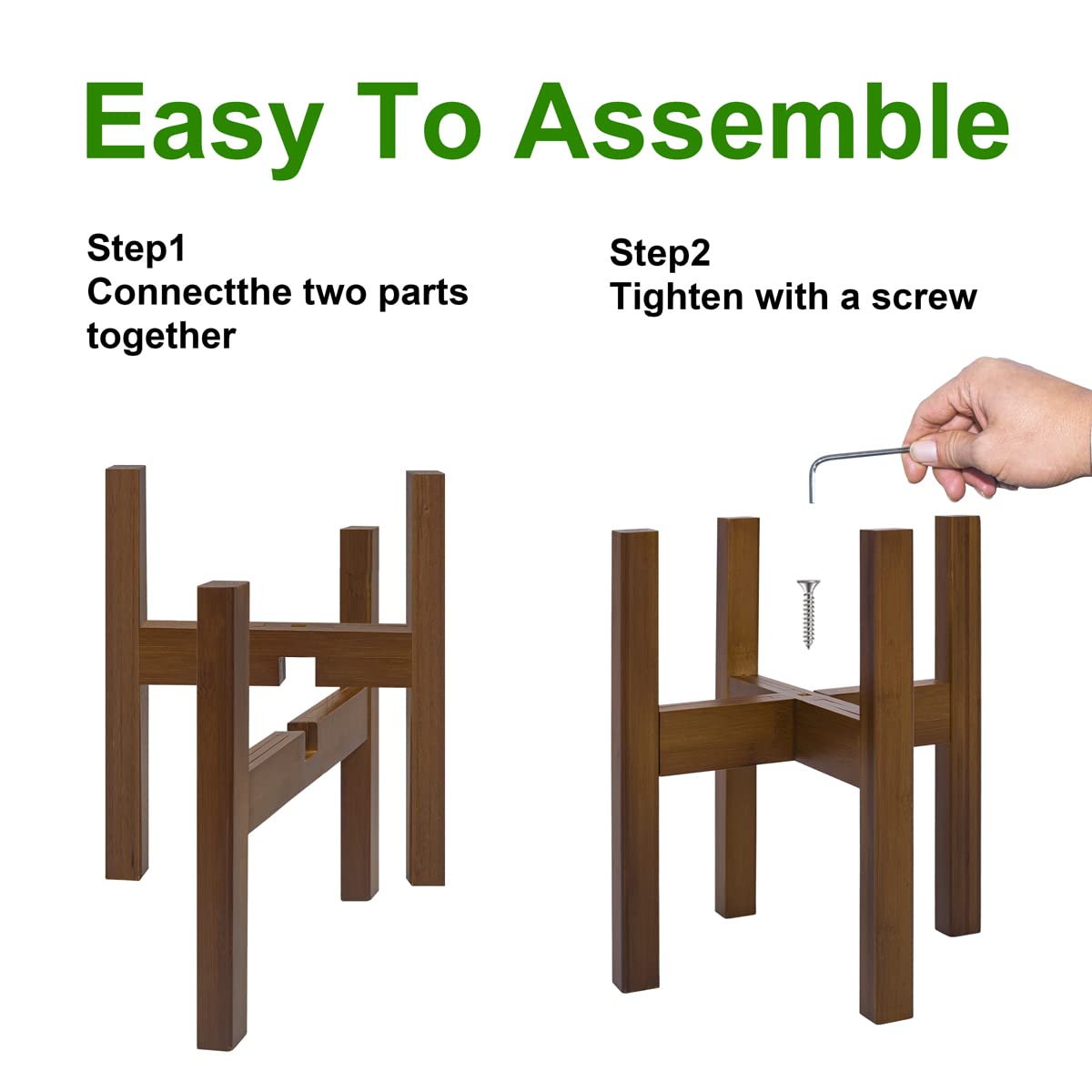 - 【Easy to Assemble】 Just slot the cross-combining two H-shaped main body brackets and tightening with screws.Package Included,Adjustable indoor plant stand x 1; Allen key x 1; Screw x 1; Anti-slip padx 4.