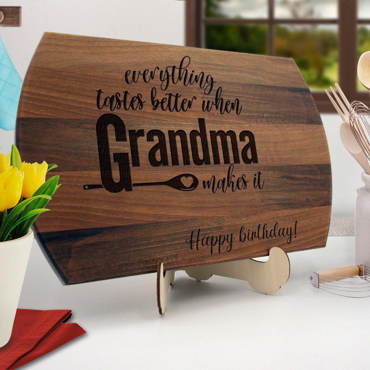 - PREMIUM GIFT - Personalized engraved cutting board is a perfect idea Mothers Day, Christmas, Birtday gift, and more. Engraved with an attractive & permanent personalized design. The board is a nice quality.