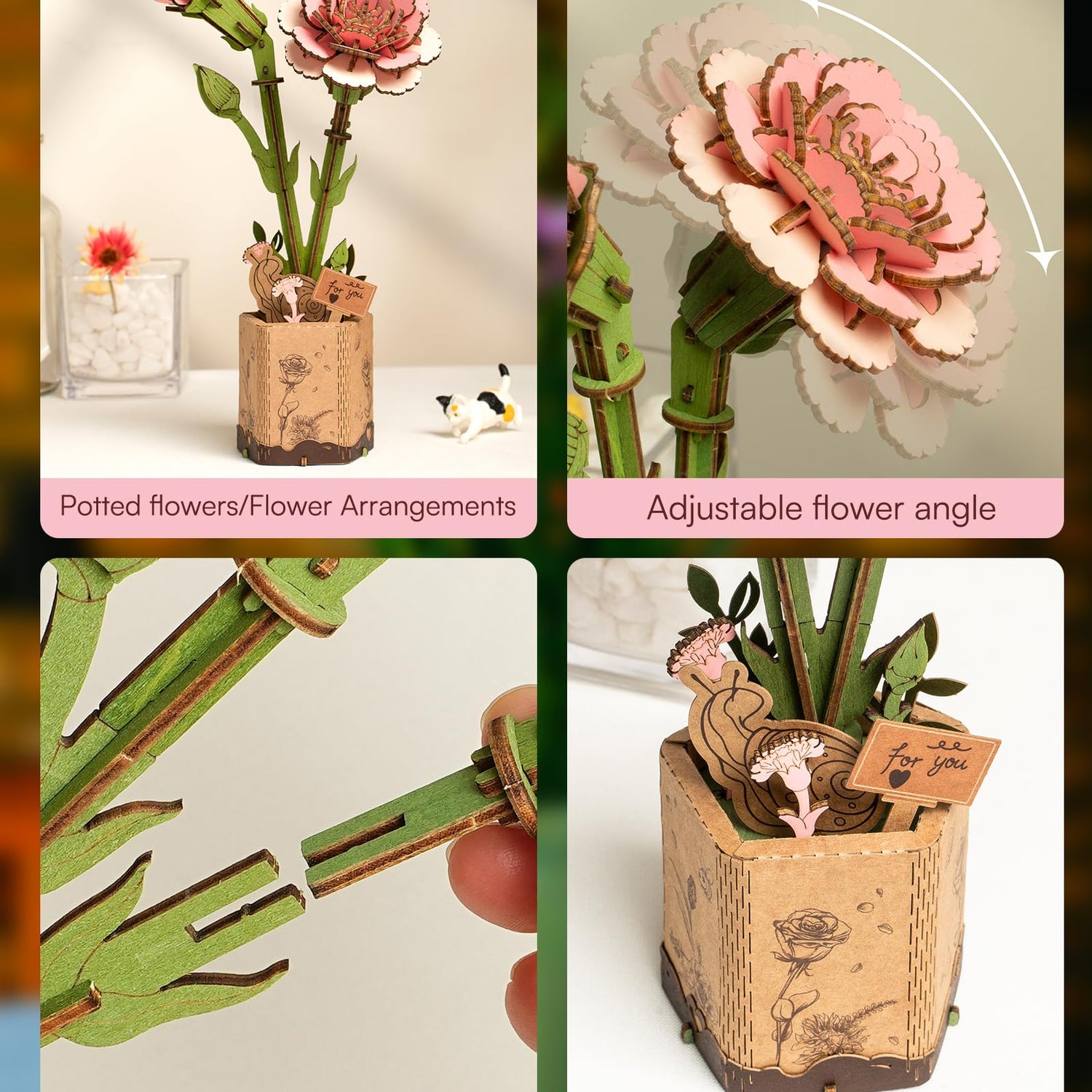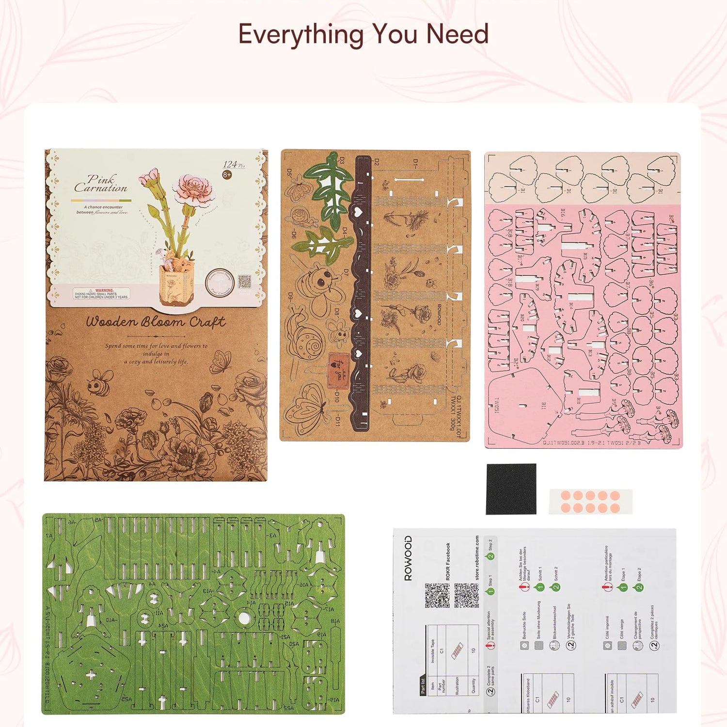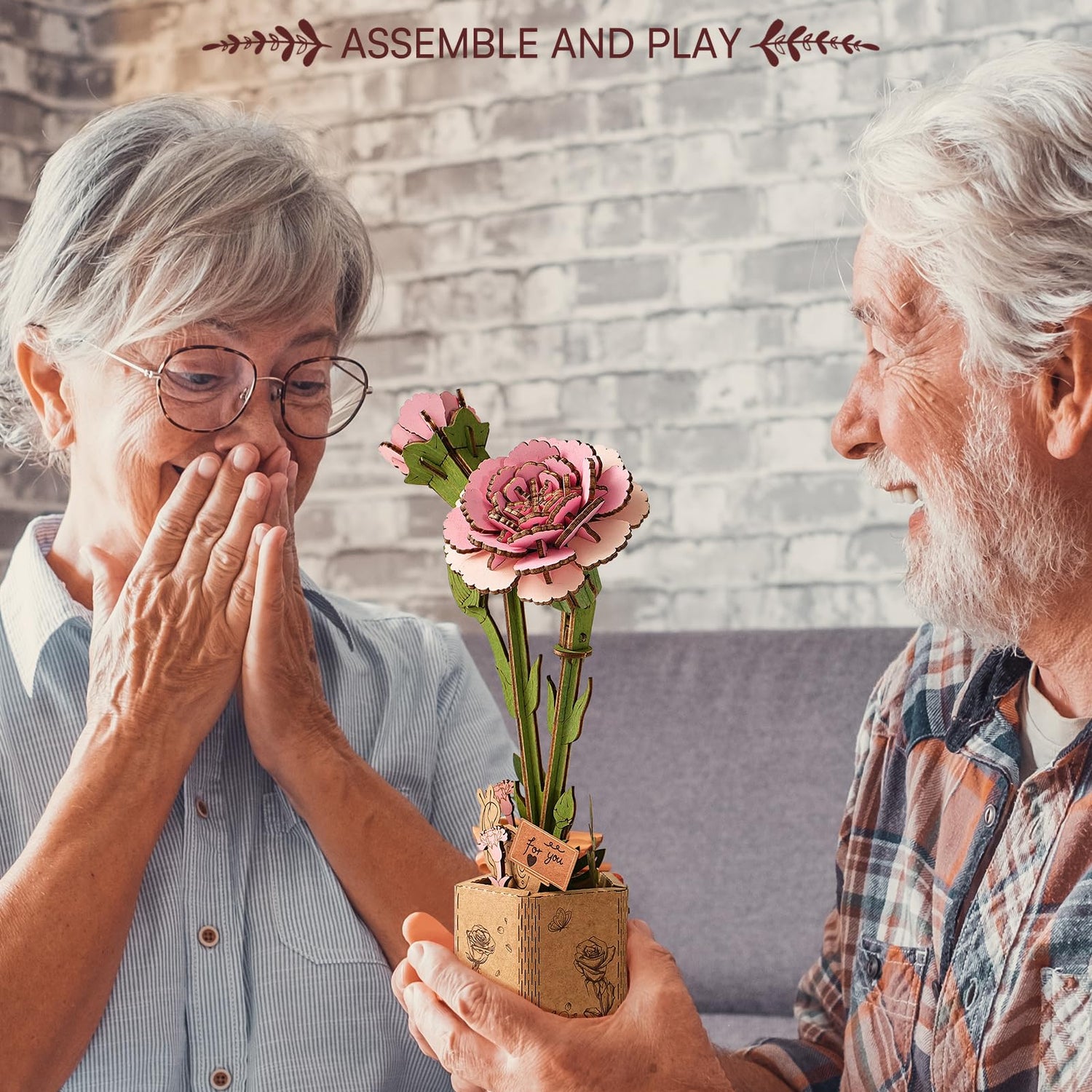 - 【ROBOTIME Model Flower Kit】Our Timeless Wooden Pink Carnation, with its exquisite details and pre-colored petals, radiates vibrant, lasting beauty in any room. Symbolizing enduring love and joy, these flowers never wilt, making them a perfect keepsake.