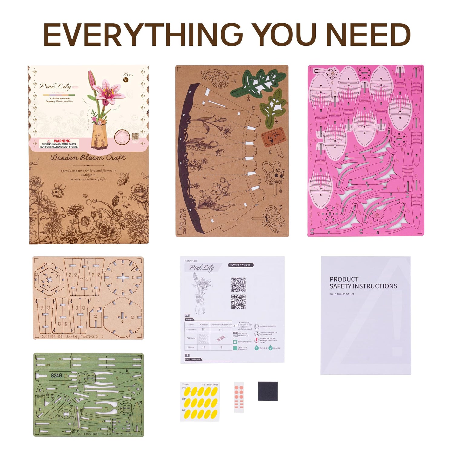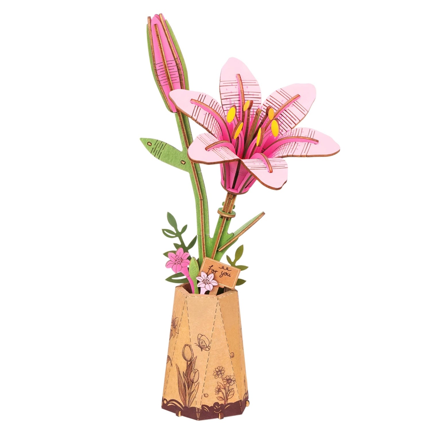 - 【ROBOTIME Model Flower Kit】Our Timeless Wooden Pink Lily, with its exquisite details and pre-colored petals, radiates vibrant, lasting beauty in any room. Symbolizing enduring love and joy, these flowers never wilt, making them a perfect keepsake.