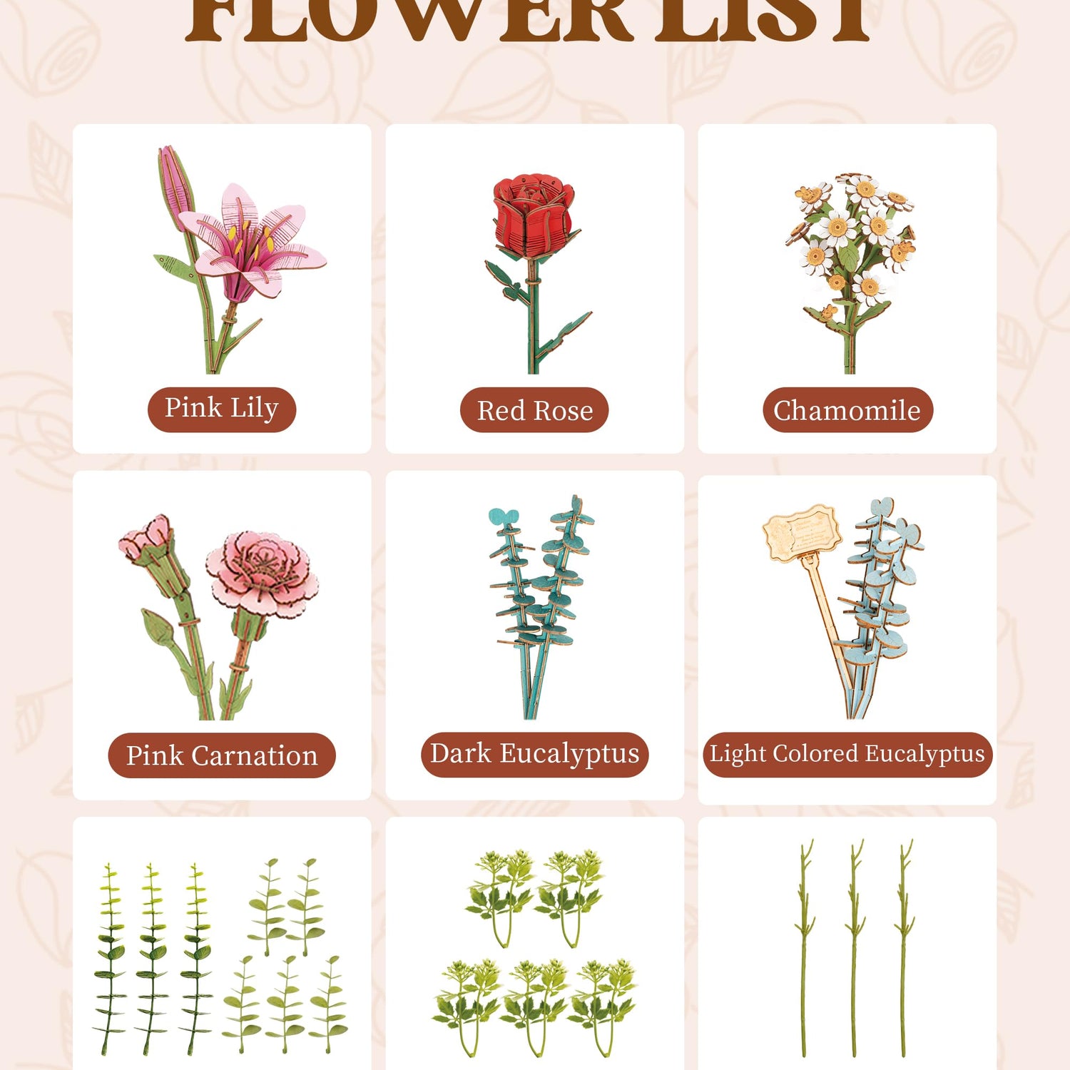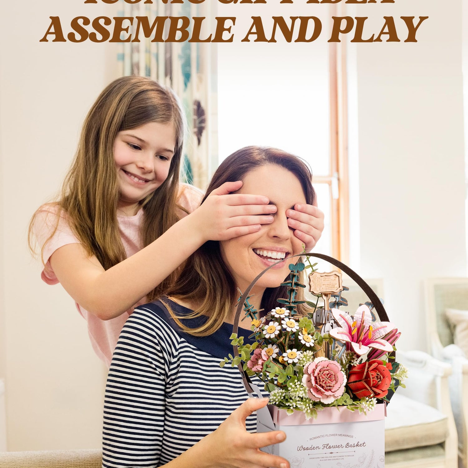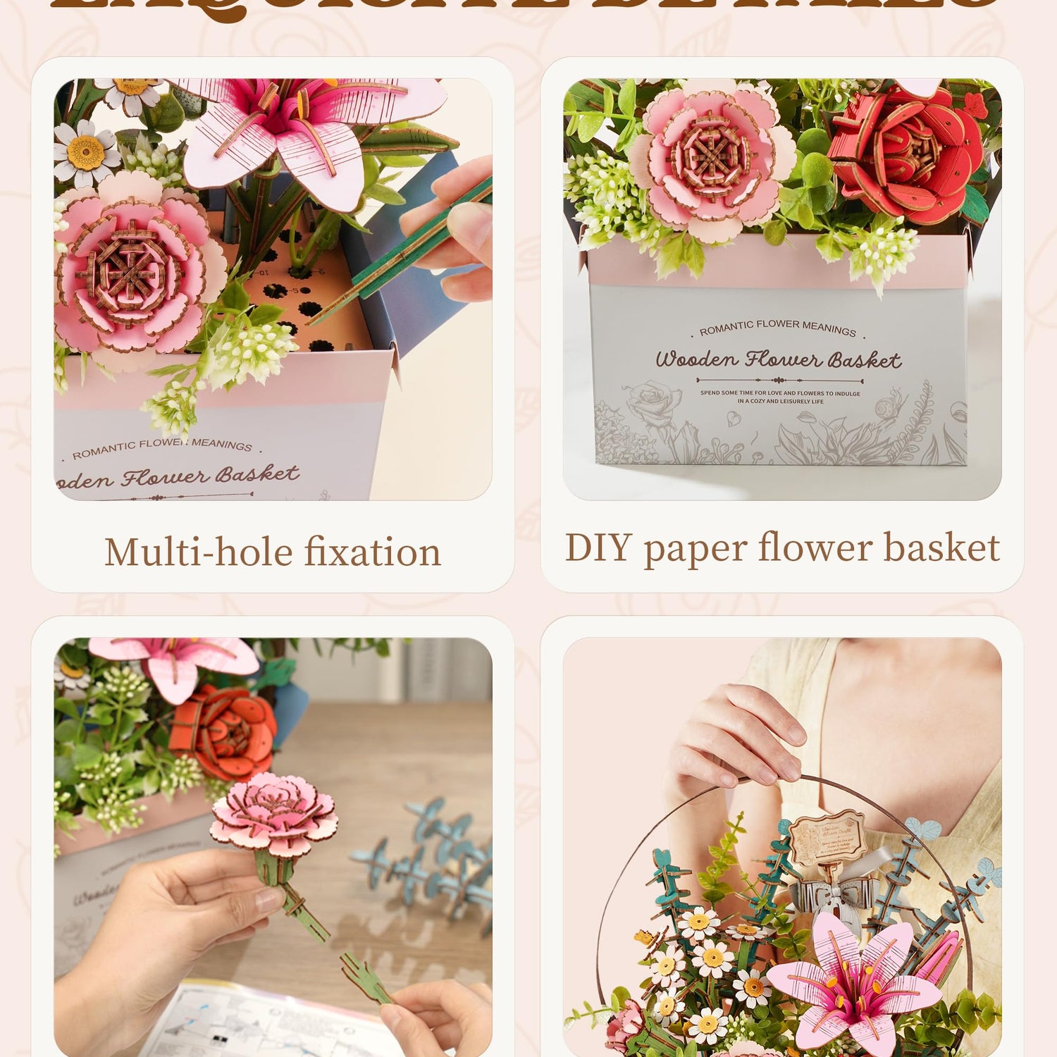 ROBOTIME 3D Wooden Puzzles for Adults, TW03H Wooden Flower Basket Craft Kit, Artificial Flowers Handheld Gift Box, Unique Gift for Birthday/Holidays/Homewarming
