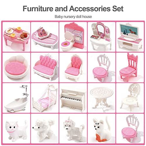 - [ BEAUTIFUL PRINCESS HOUSE ] - Robud Dream Doll House comes with 24 PCS furniture. Sturdy and durable, This will last through many years of play. Contains 3 Stories and 5 ROOMS, including a bonus BALCONY make the house very attractive to children. Fits all fashion dolls up to 5" including collectibles and figurines.