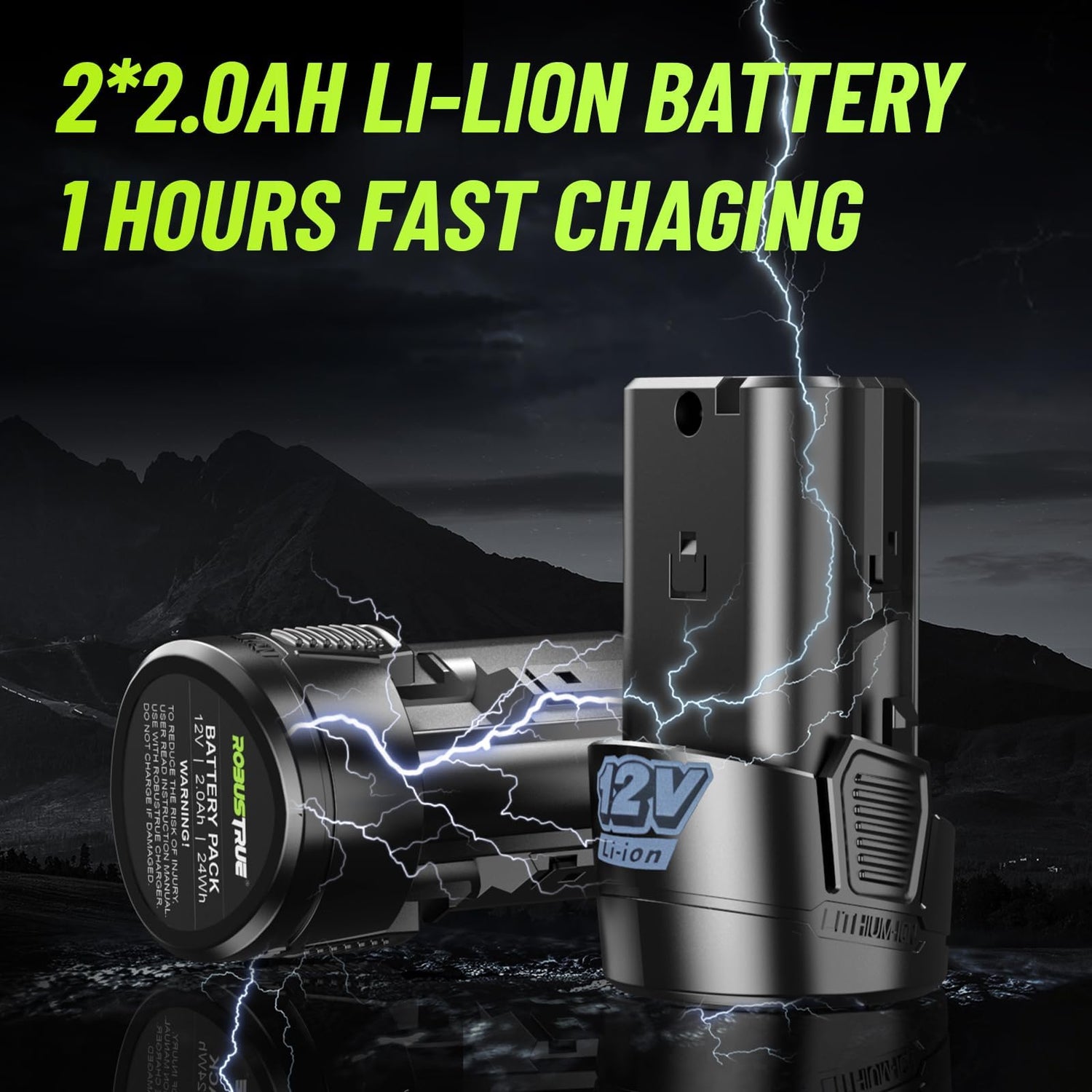 - 2x 2000 MAH Battery and Long Lasting: Robustrue's battery passes rigorous 1000 charge cycle tests to ensure its durability and longevity. The power ratchet wrench is equipped with two rechargeable 12 V batteries, which can be used continuously for 4 hours after being fully charged. The powerful battery life speeds up your work efficiency