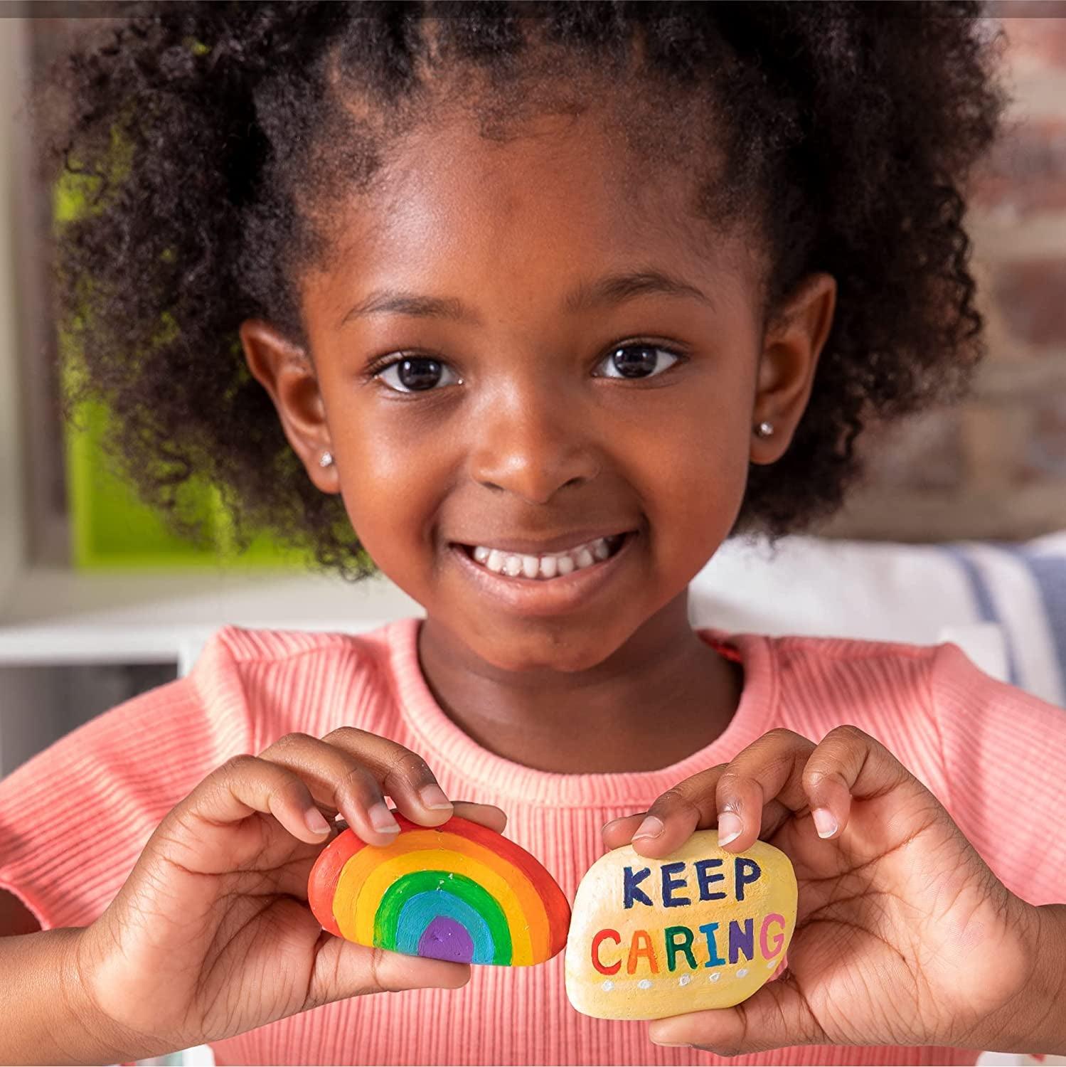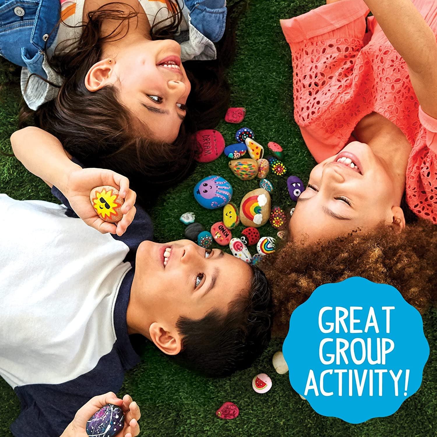 Rock Art Kit Painting Arts and Crafts Kit, 3 Pounds of Rocks and 12 Paints, Great Summer Activity
