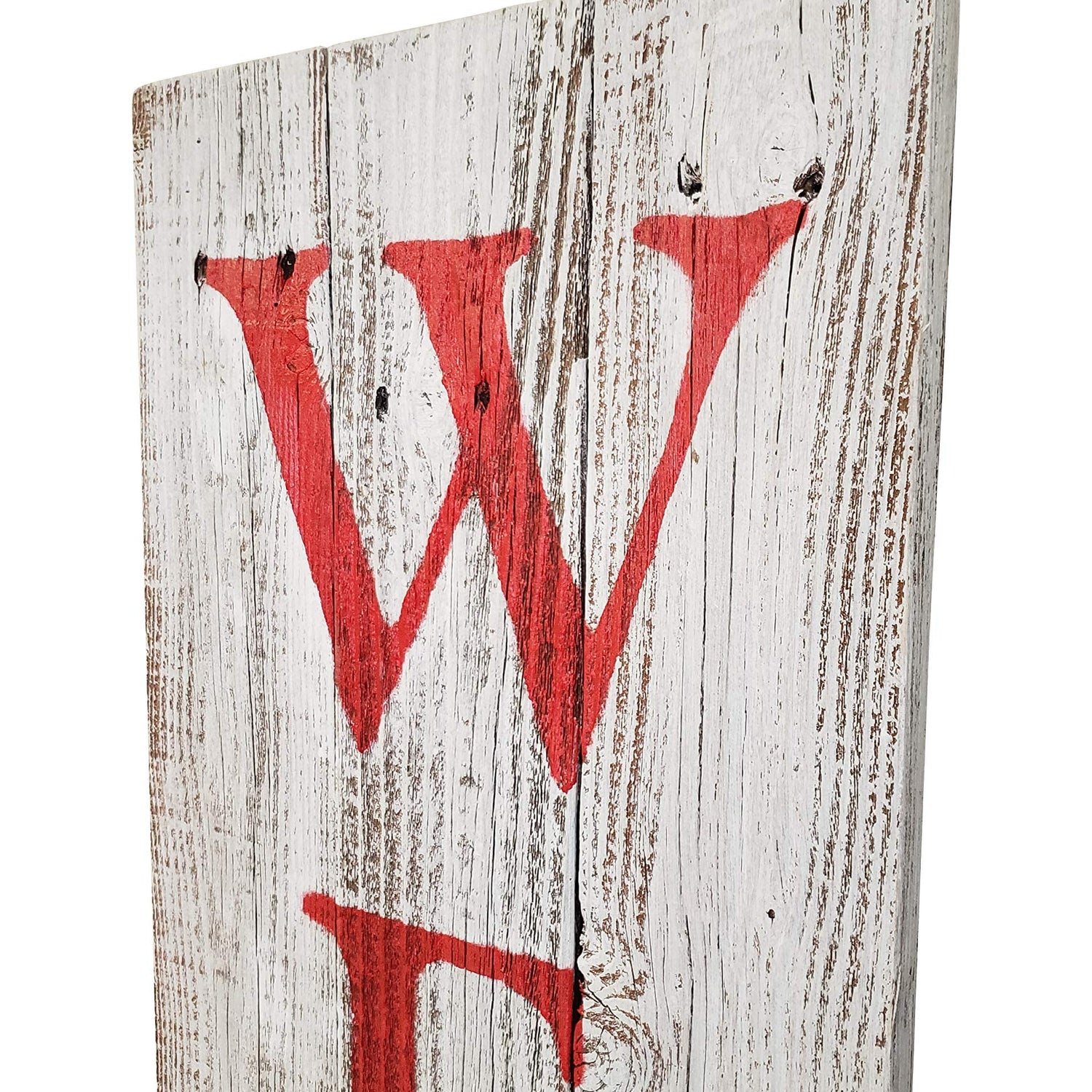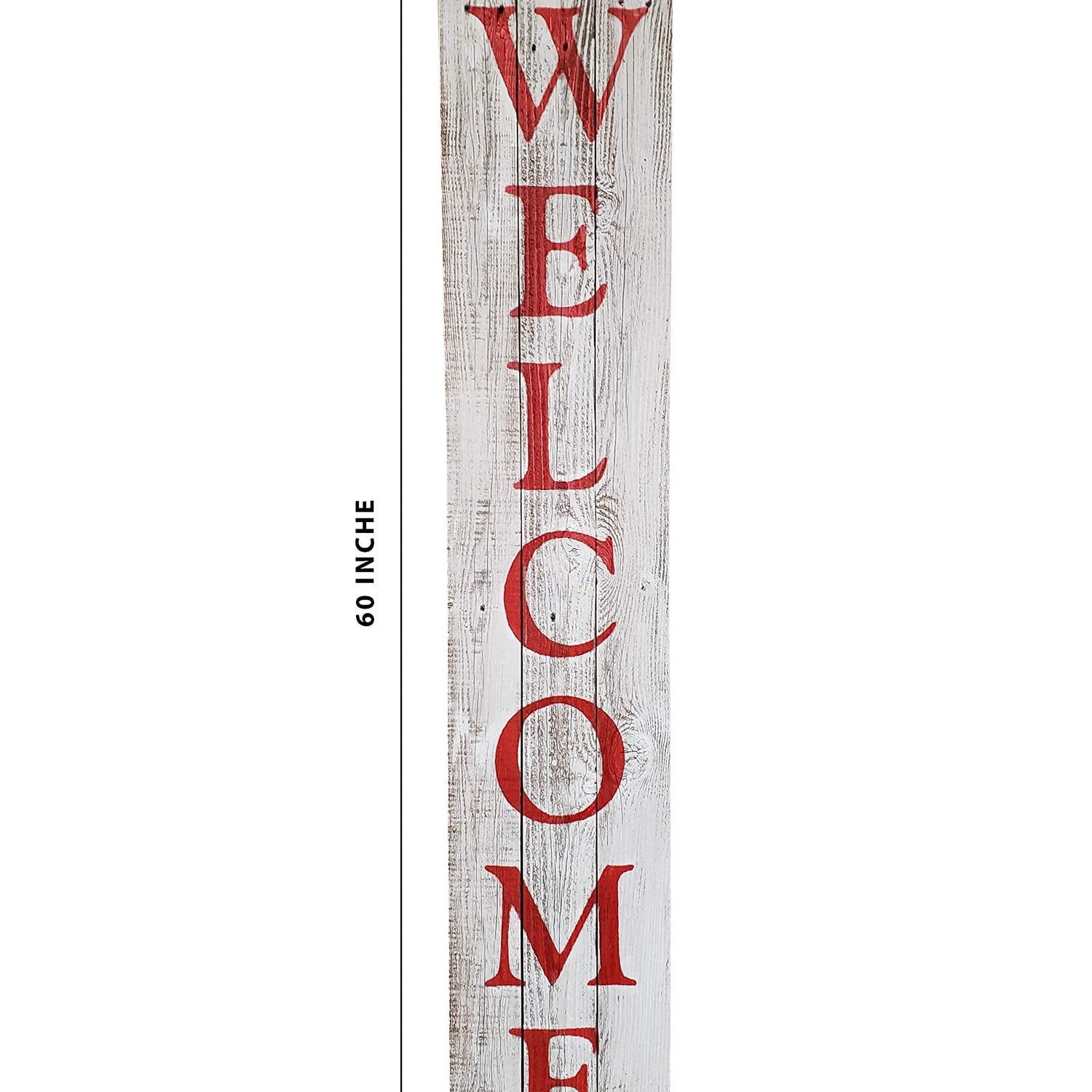 Rockin' Wood Indoor Outdoor Welcome Sign 5 Foot Vertical Rustic Reclaimed Wood Farm House Style for Front Door or Porch, Whitewash with Red Lettering