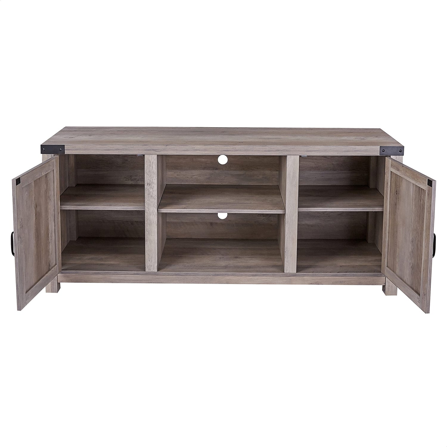 Details: The ROCKPOINT Furniture 58" Barn door TV stand measure 58" L x 15. 4" W x 25" H.