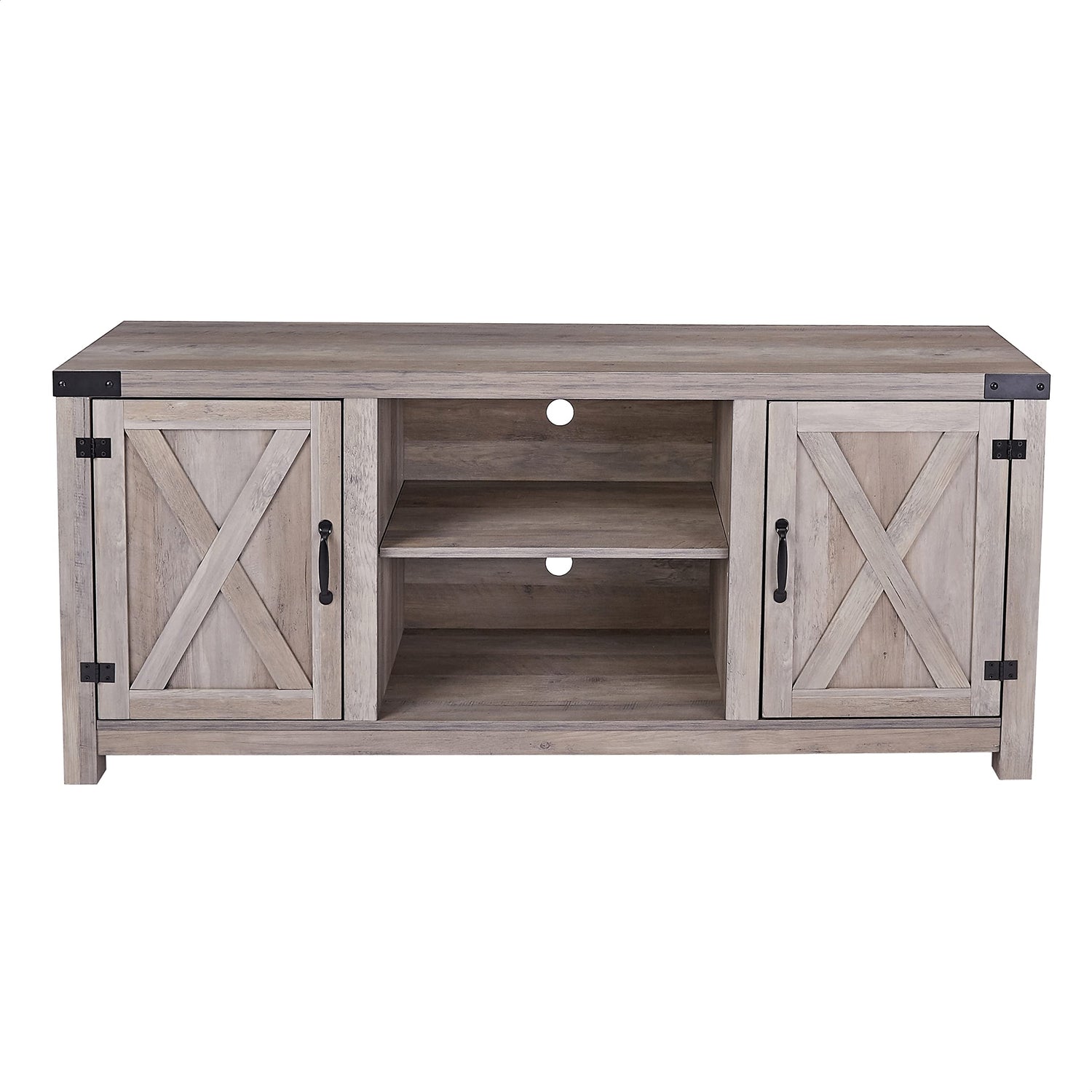 ROCKPOINT 58inch Barn Door TV Stand Entertaiment Media Console Center Industrial Style , Grey Wash