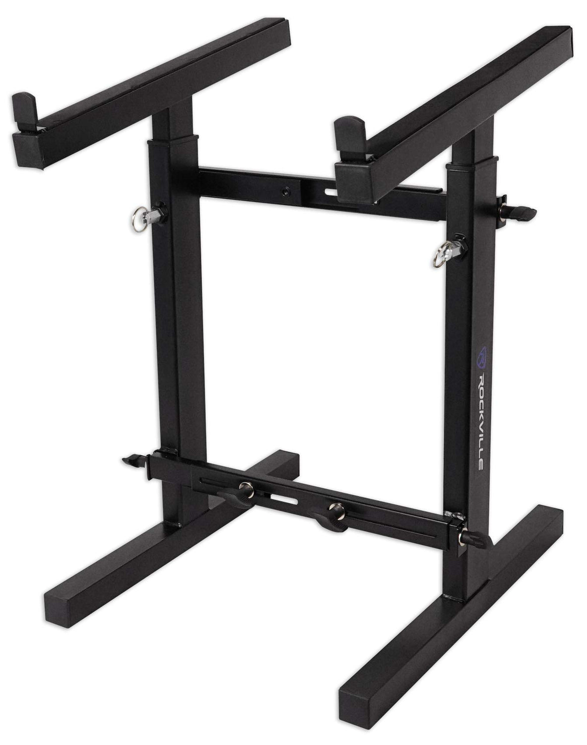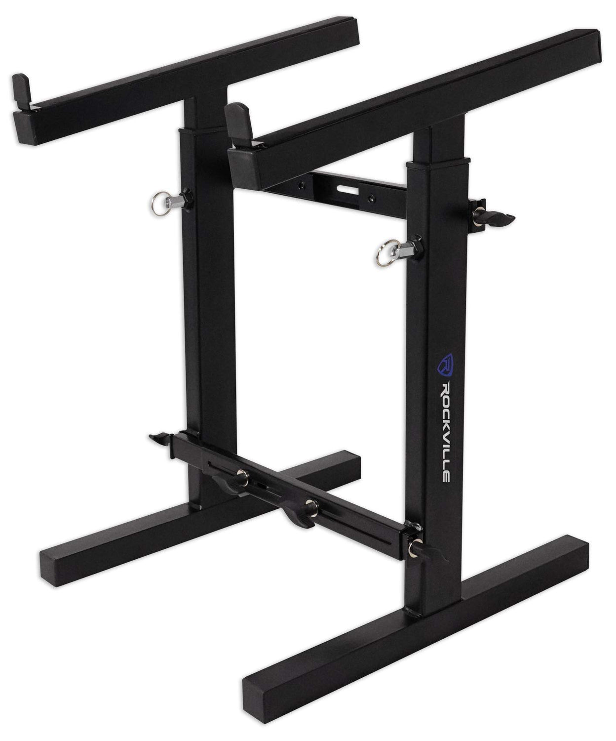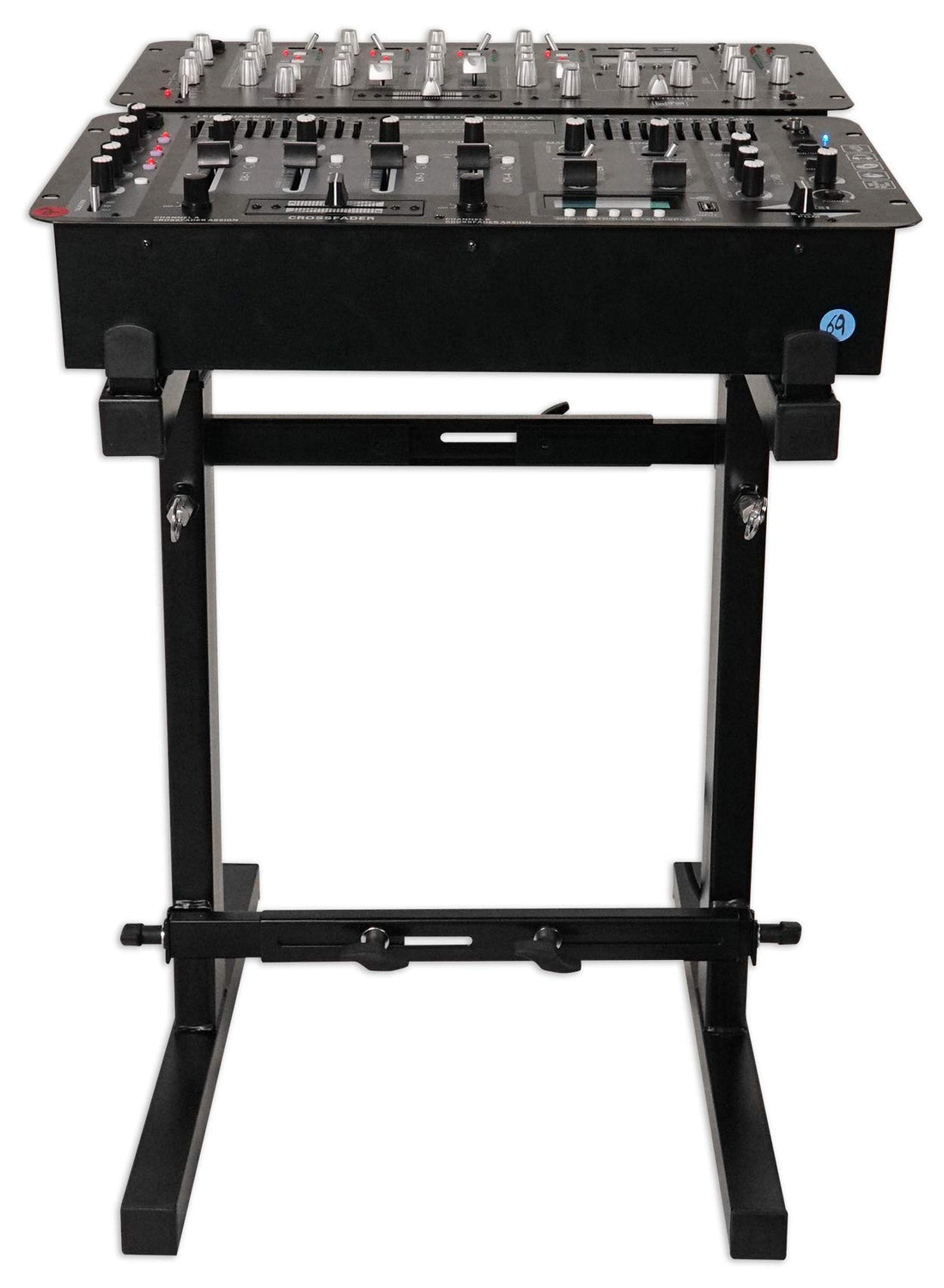 - Steel stand with sturdy arms large enough for mixers, DJ gear, keyboards, and more