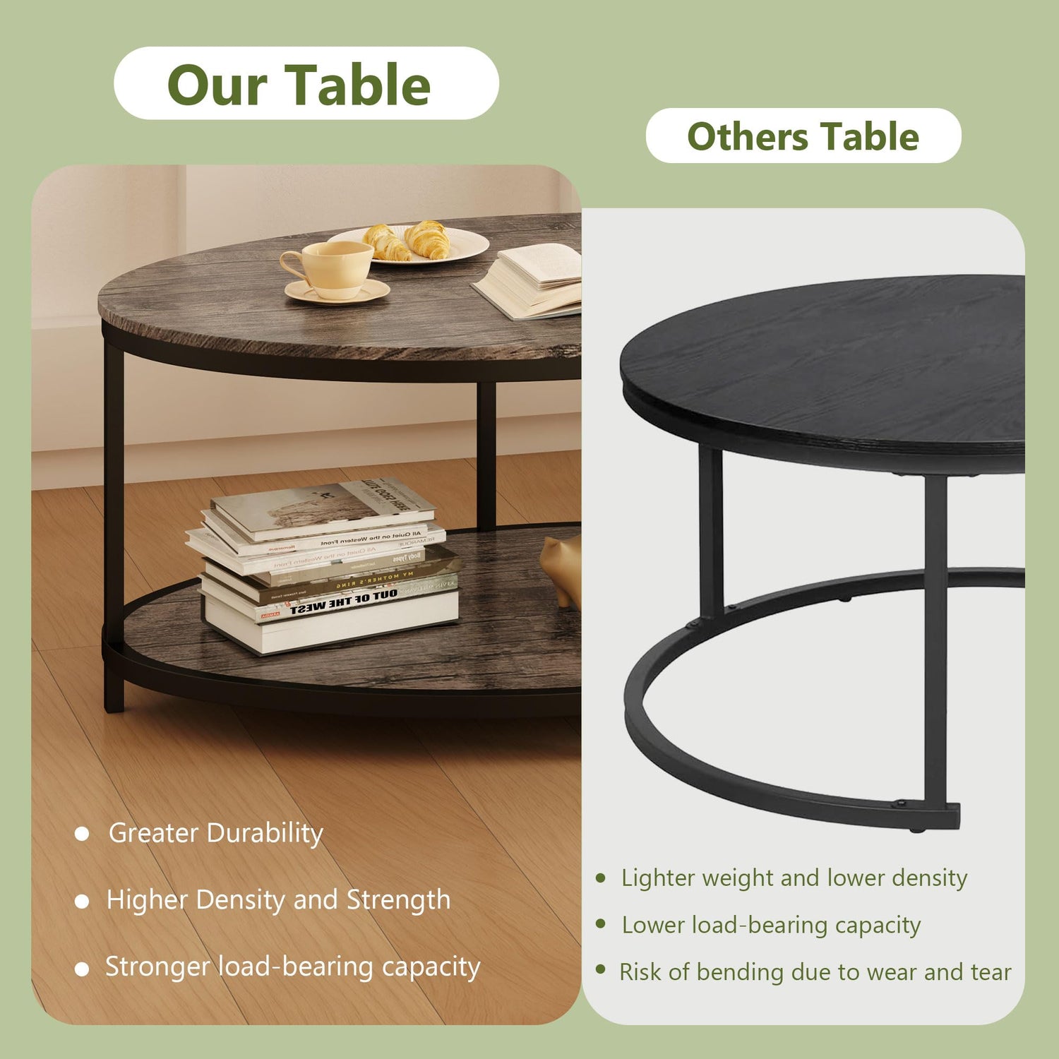 - 【Spacious and Versatile Design】This 2-tier coffee table features a round wooden tabletop with a generous 43.3 inch diameter, providing ample space for dining, enjoying meals, or placing drinks and cutlery.