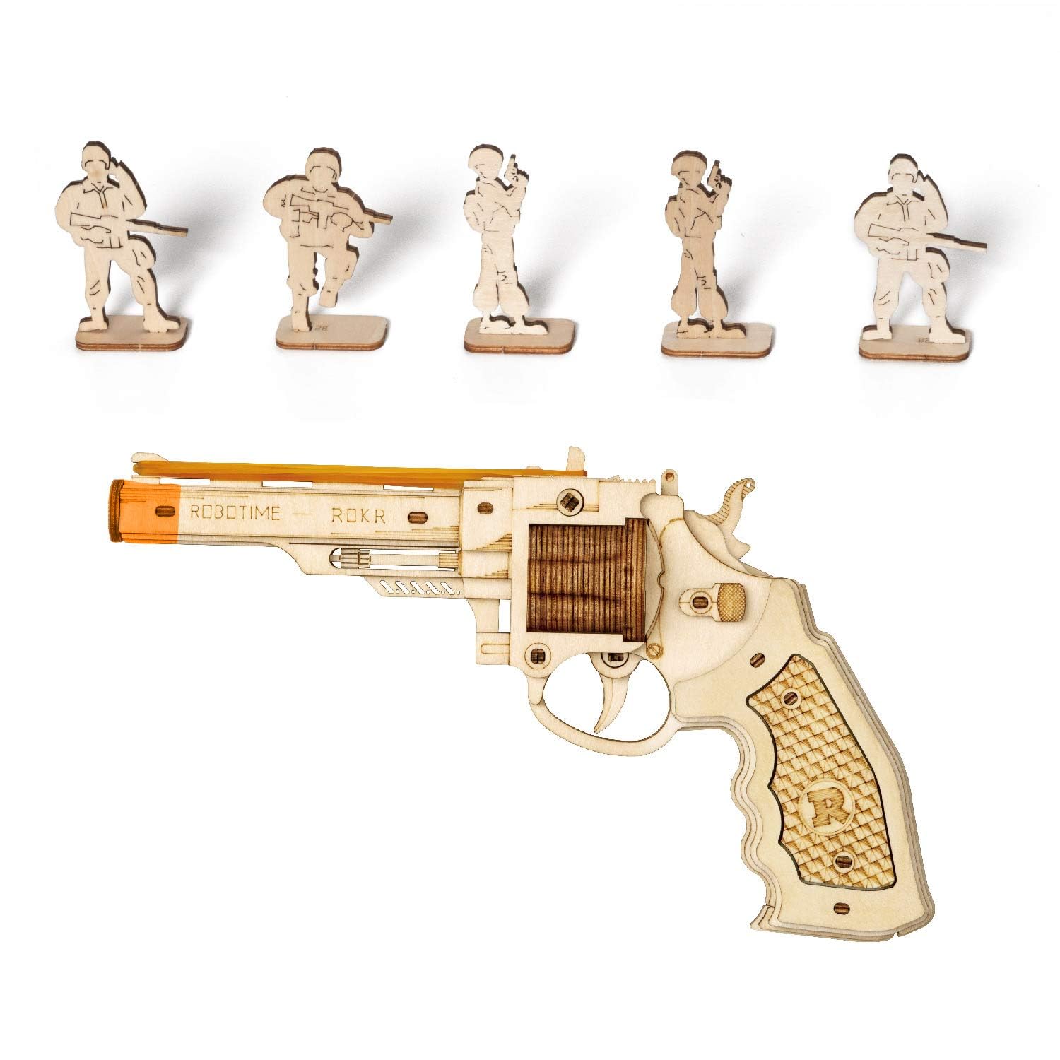 - 【Constructing Wooden Model with Clear Instruction】 This is a designed DIY revolver kit that requires your hands-on work to complete. The mechanical wooden puzzle toy uses precise laser-cut plywood.