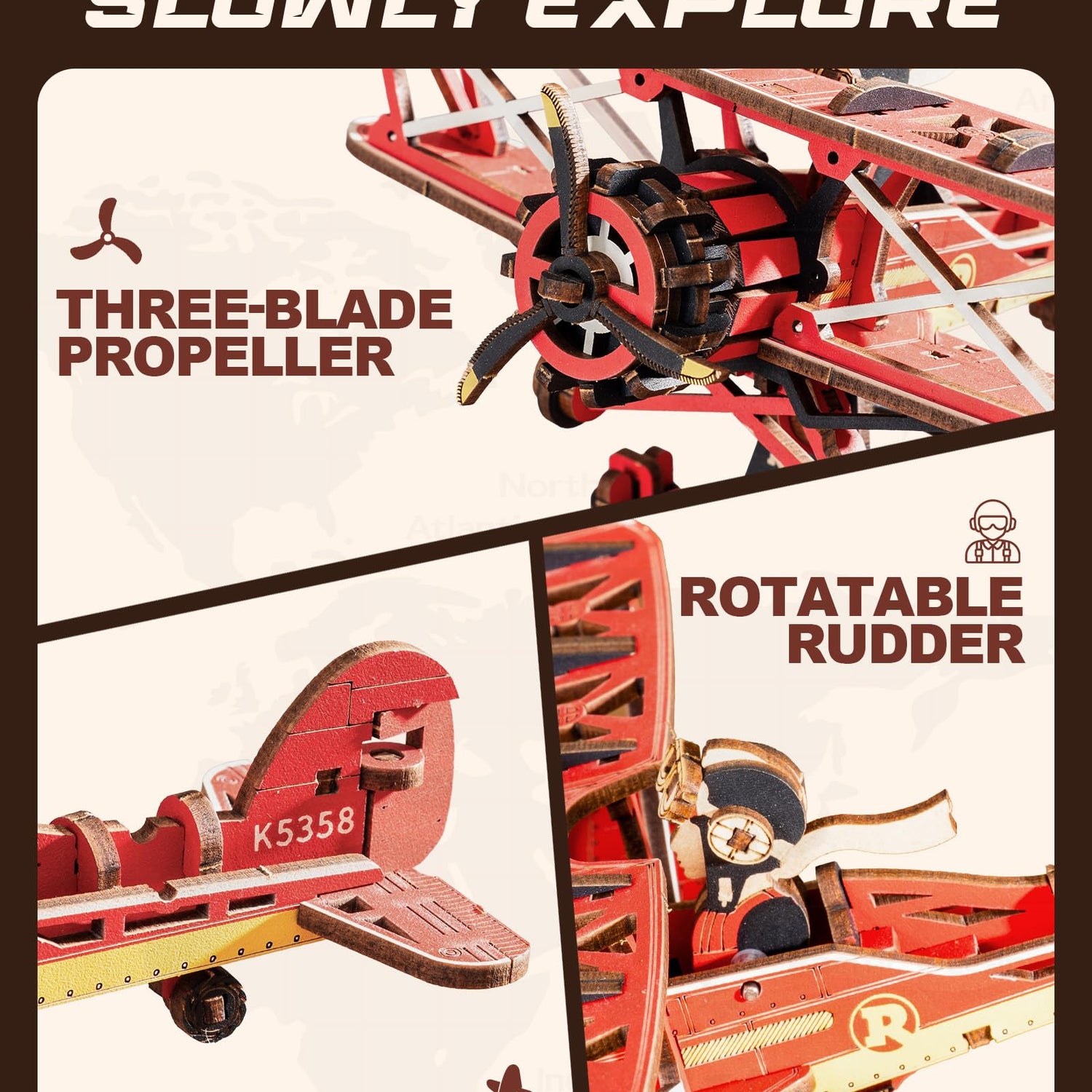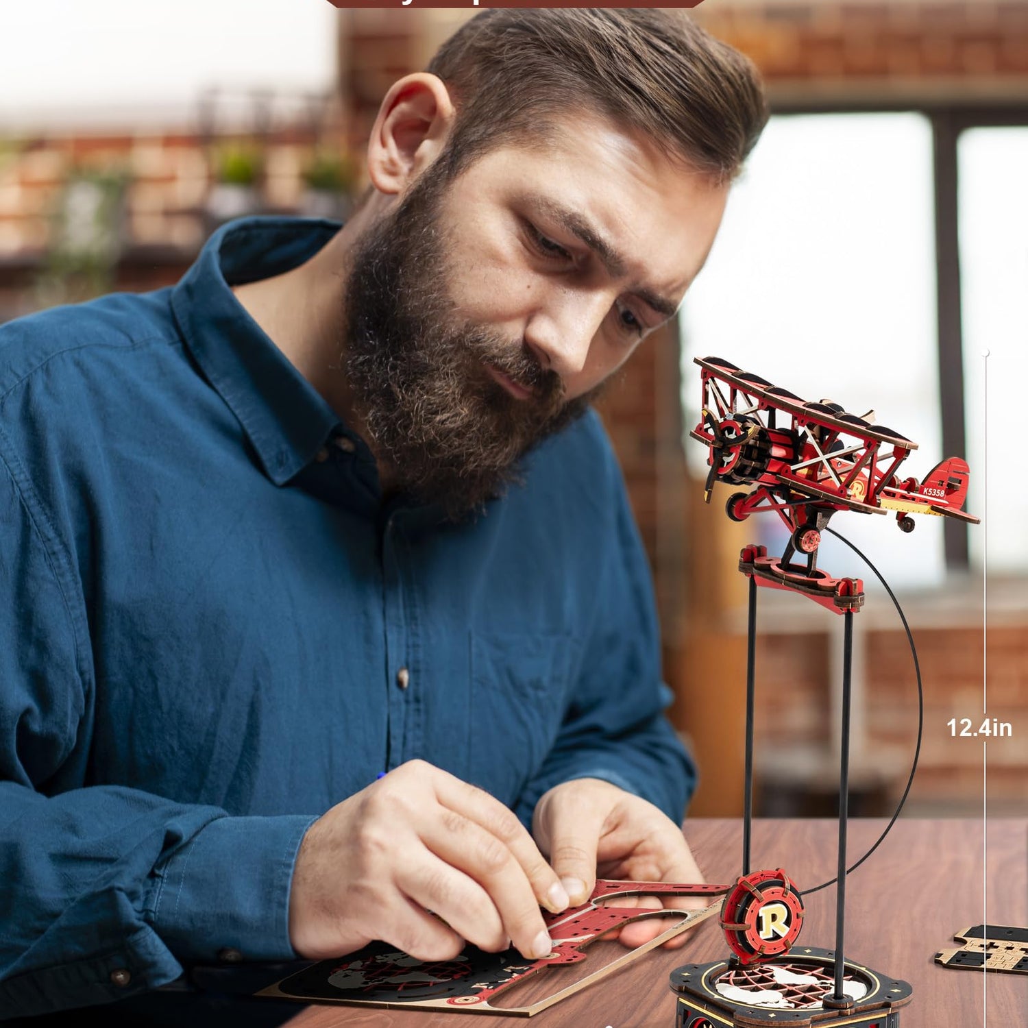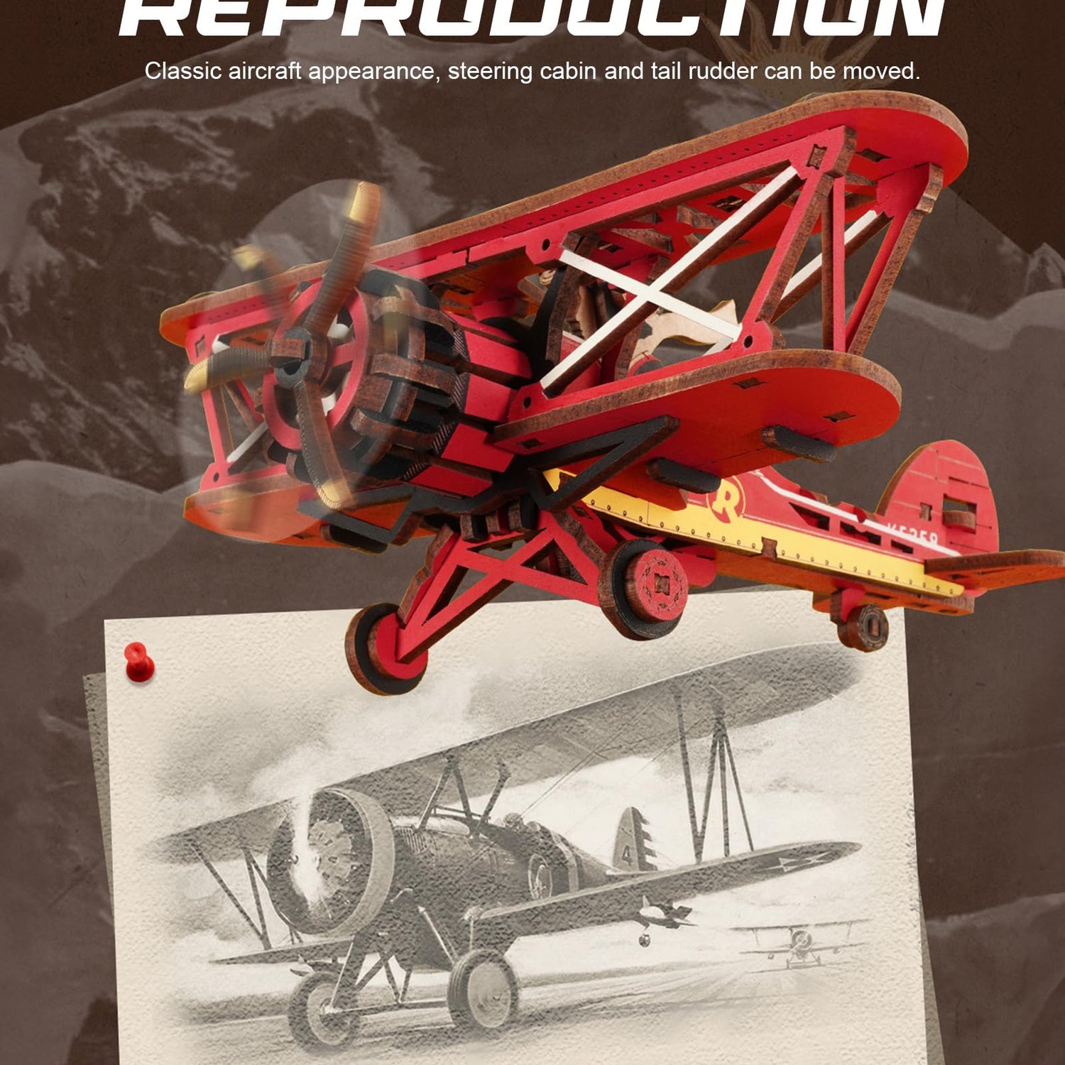 - [Gravity Swing]This wooden puzzle combines assembly, entertainment, and decor into one stunning piece. Once completed, it beautifully replicates a classic biplane gladiator from the last century, making it a perfect display for aviation enthusiasts and history lovers alike.