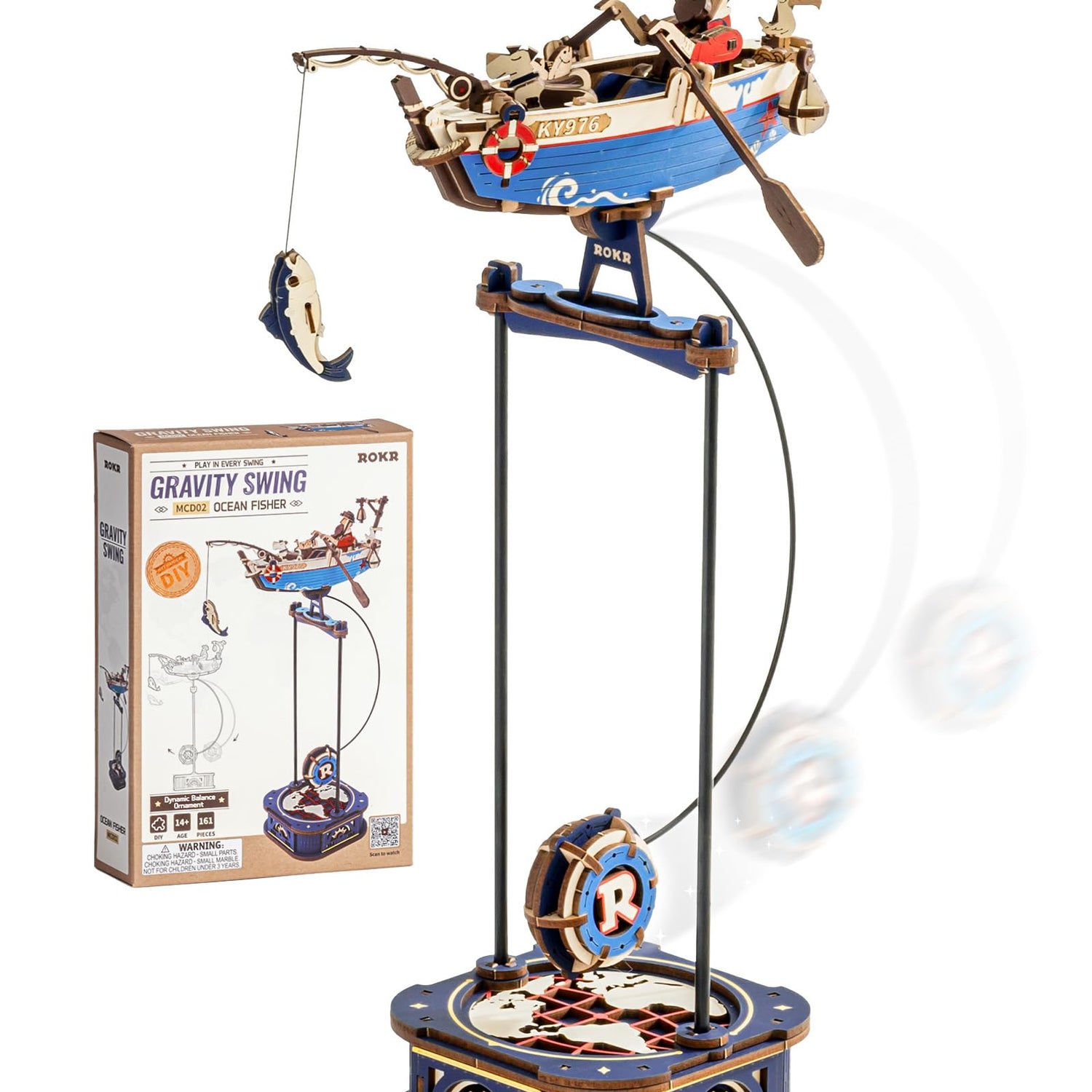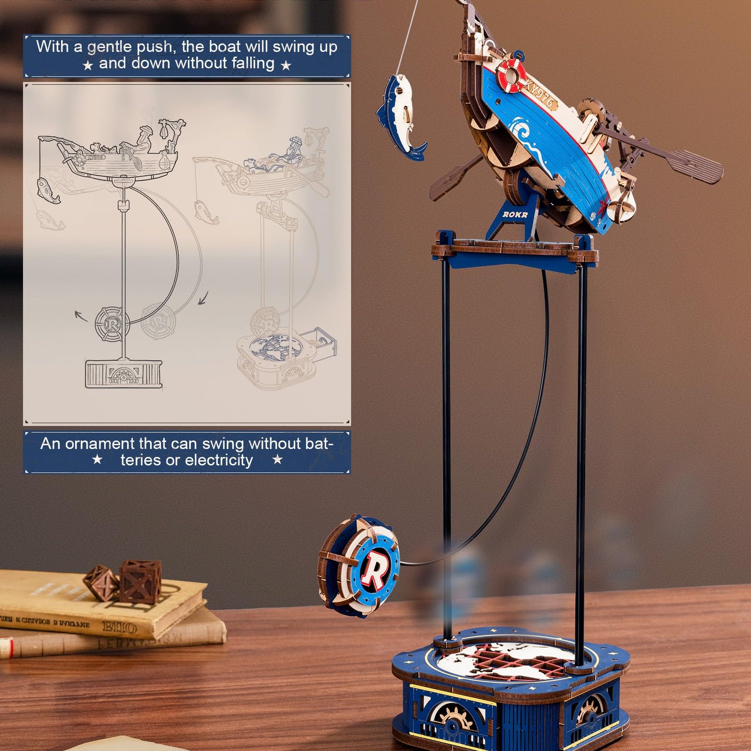 - [Easy Assembly]With an easy assembly level, it takes about 1.5 hours to build. The model features a unique swinging motion, powered by its own weight and a counterweight in the base ring, mimicking the gentle sway of a fishing boat on the ocean waves.