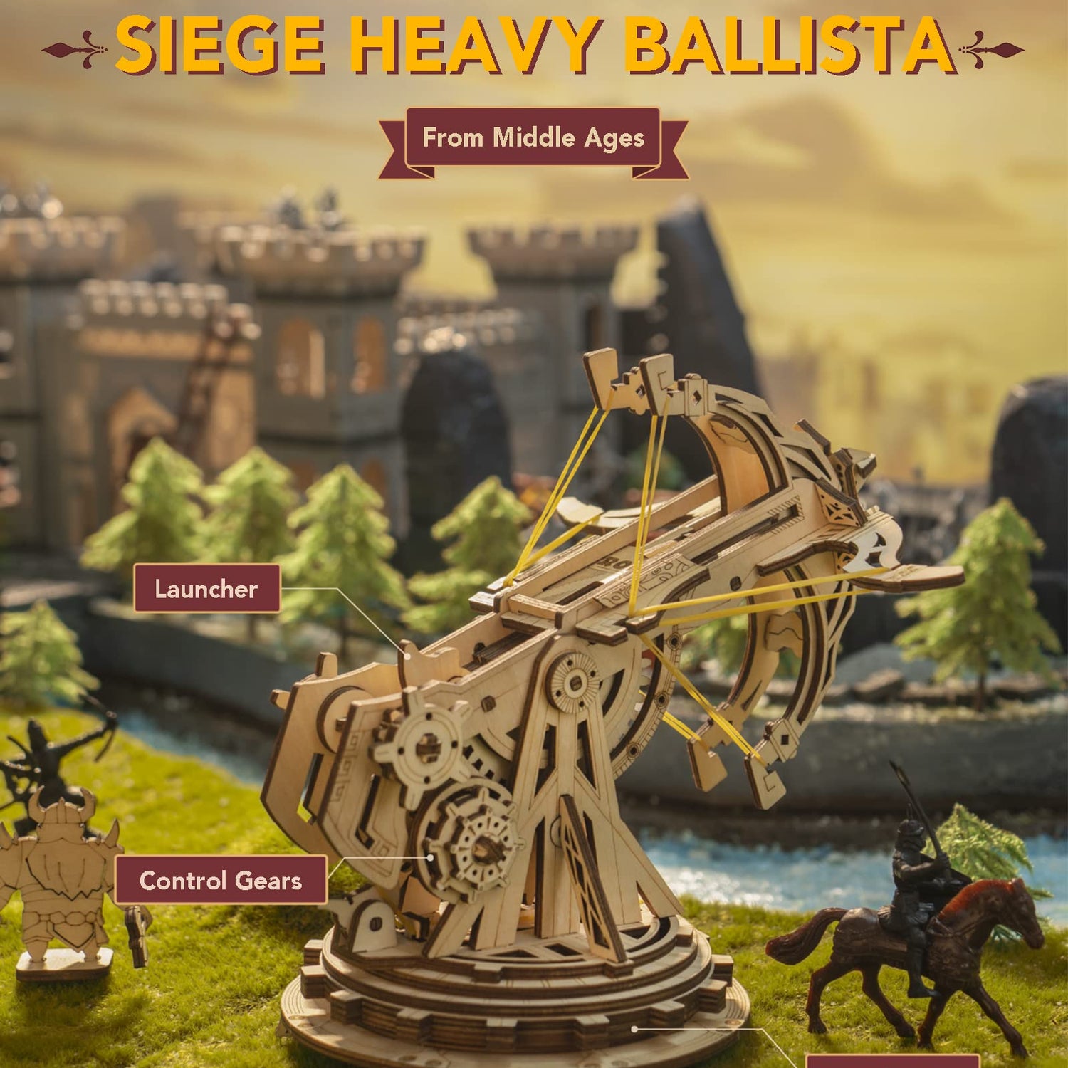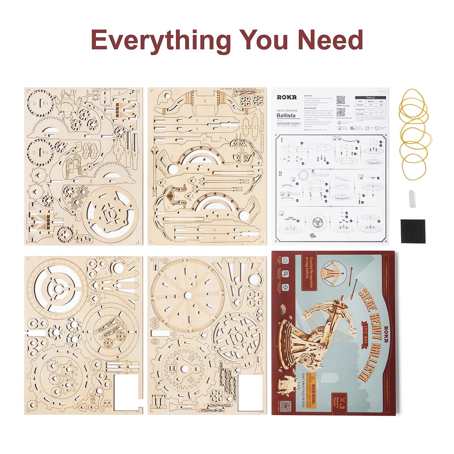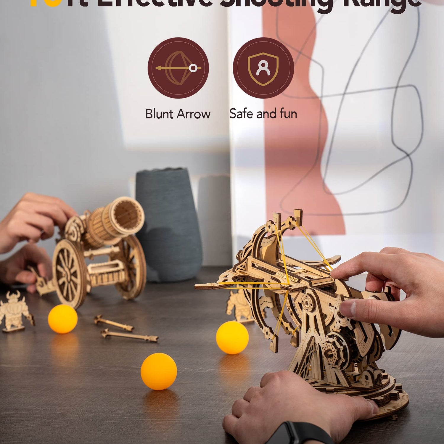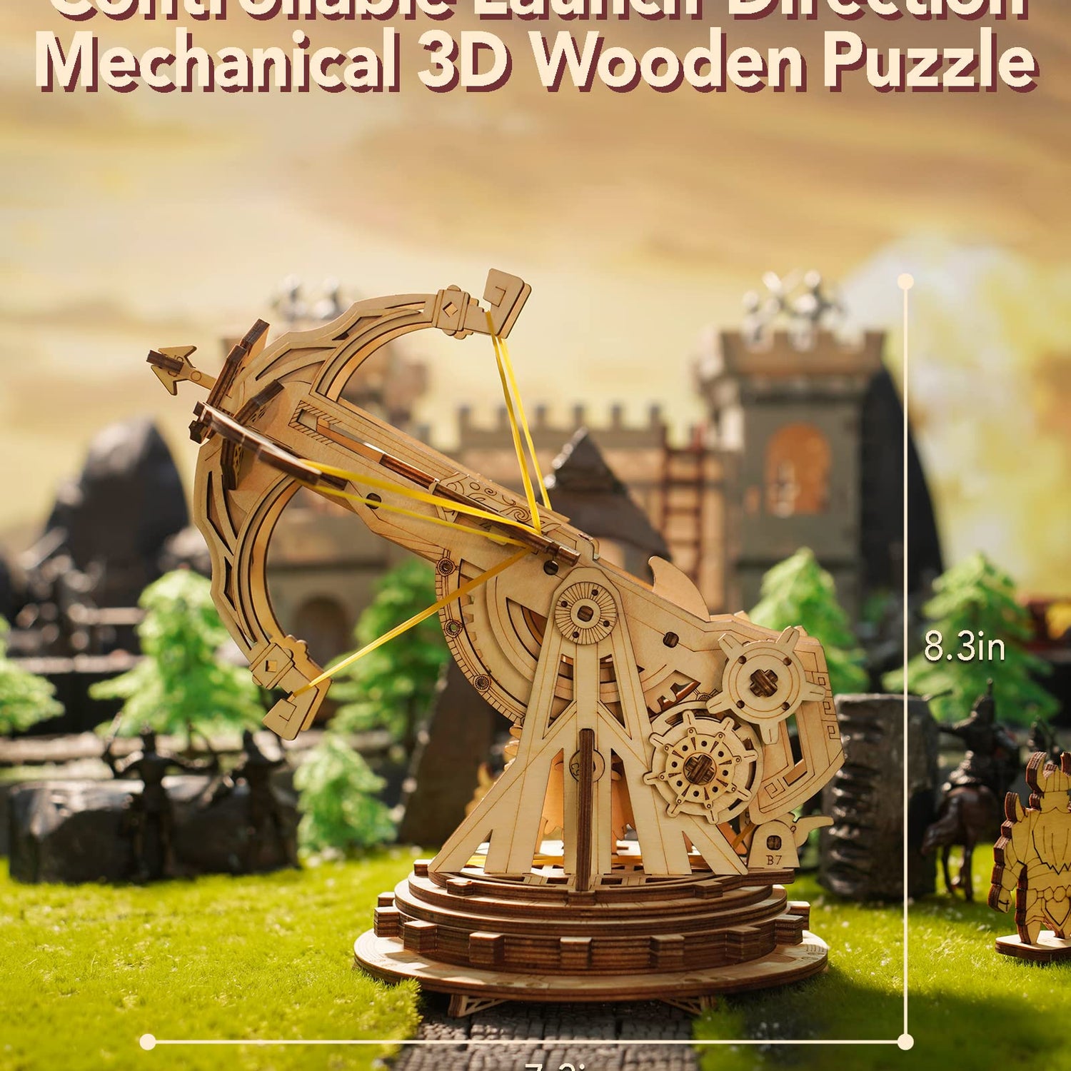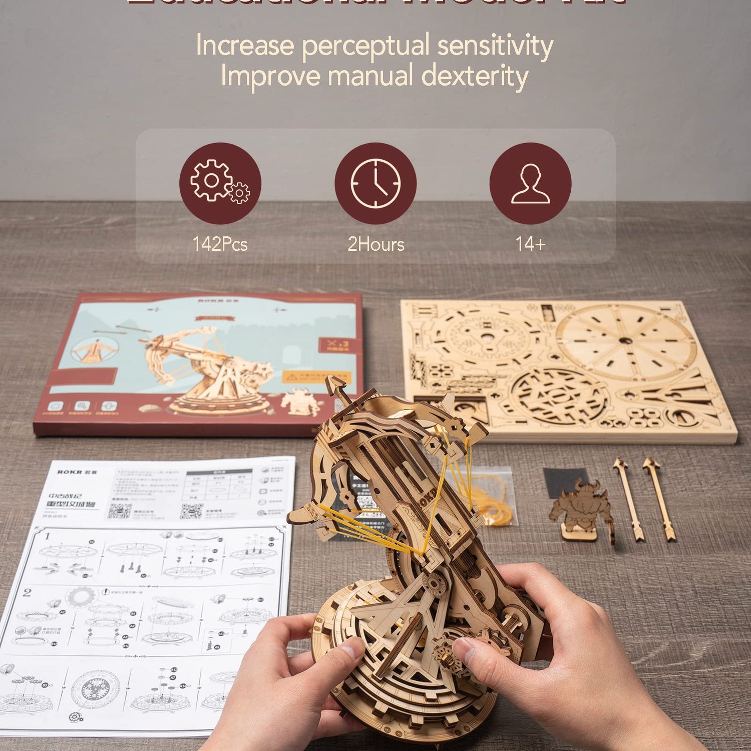 ROKR DIY Wooden Catapult Kit-3D Wooden Puzzle for Adults-Wood Ballista Model Building Kit-STEM Gift for Boys and Girls