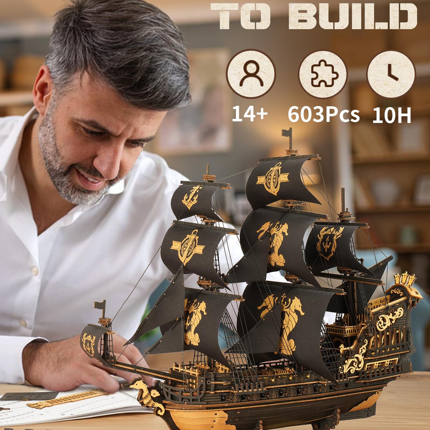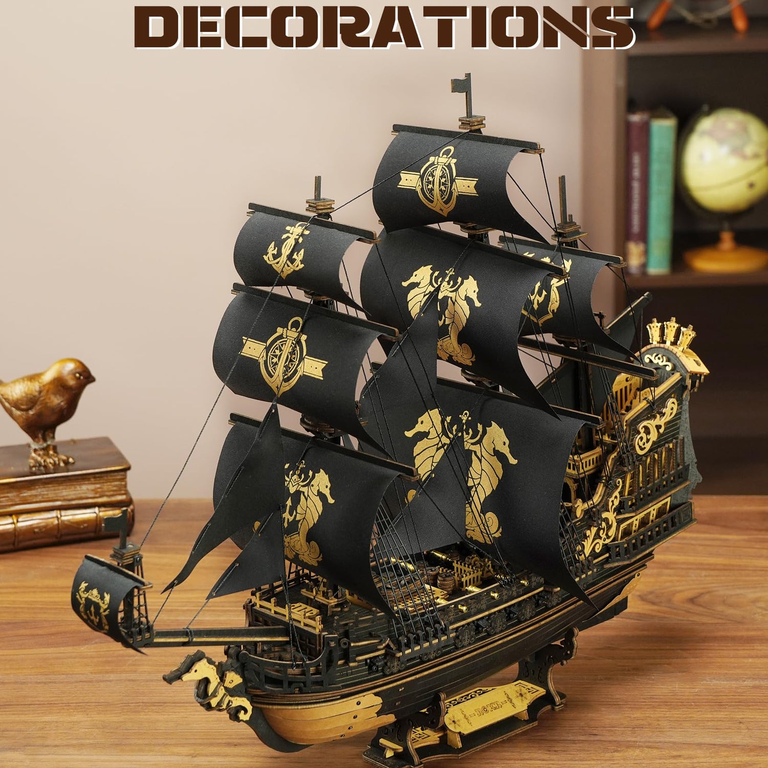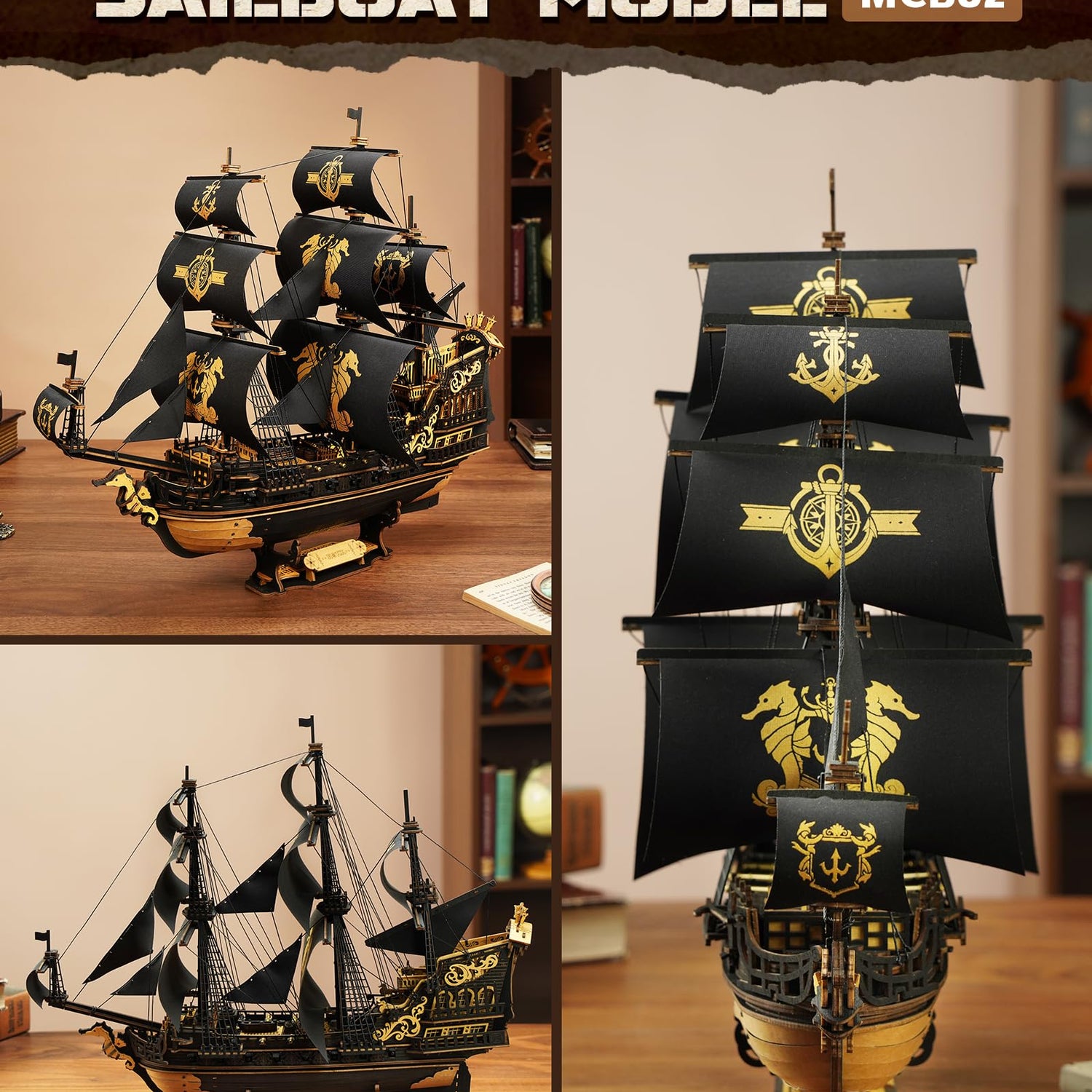 - 【Retro color matching】Black and gold color scheme with flash-gold detailing on sails and ship panels. The elegant design makes it a stunning centerpiece for any collection.