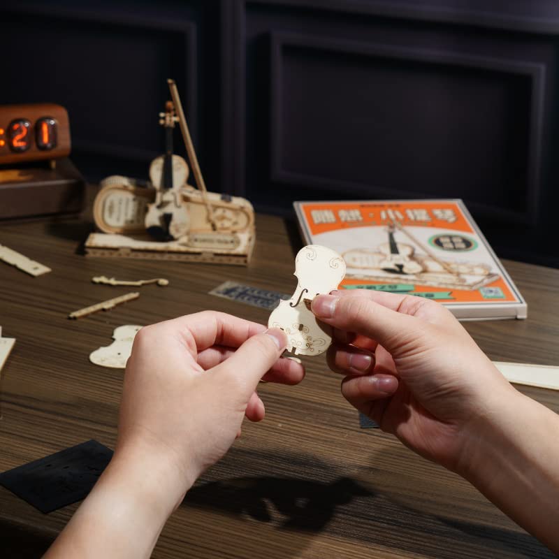 ROKR Wooden 3D Puzzles for Adults Violin, Musical Instrument Model Kit 3D Puzzles for Teens and Kids to Build, Desk Decor/DIY Hobbies/Gifts for Family and Friends (Violin)