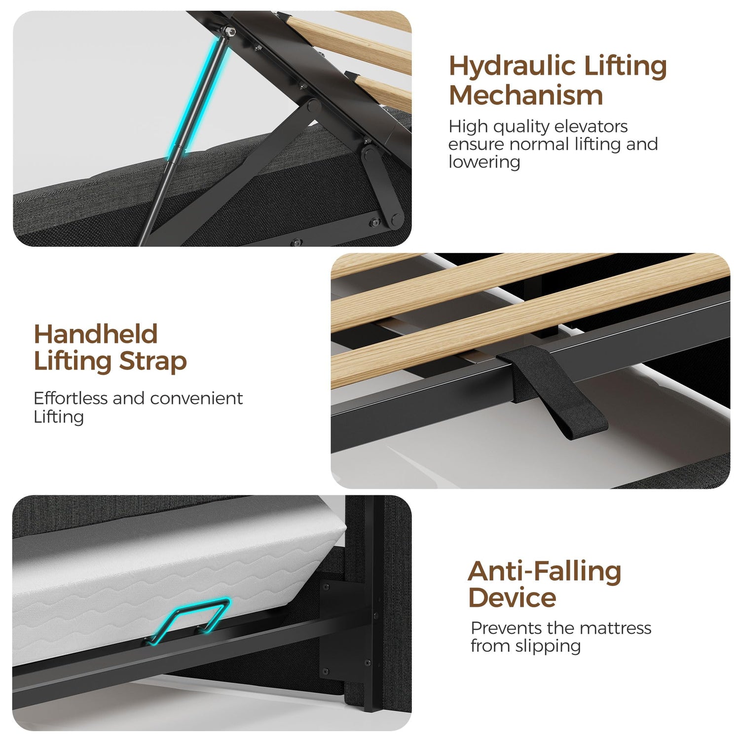- Ample Storage & Space-saving Design: With Rolanstar's hydraulic bed, you can effortlessly lift the bed board to reveal ample storage space underneath. Plus, the 2-tier headboard storage shelves keep your phone, glasses, and books within reach. Say goodbye to cluttered rooms and hello to a clutter-free, serene bedroom