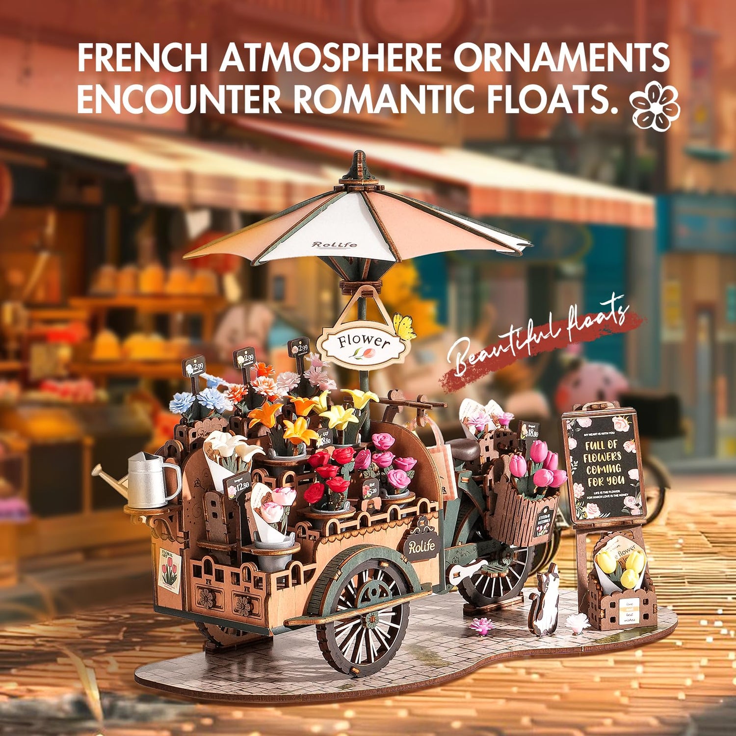 Rolife 3D Wooden Puzzles for Adults, Model Building Kit Flower Cart to Build, Fun Construction Projects Brain Teaser, Arts Crafts Collectible Handcraft Desk Decor Chirstmas Gifts for Family Teens