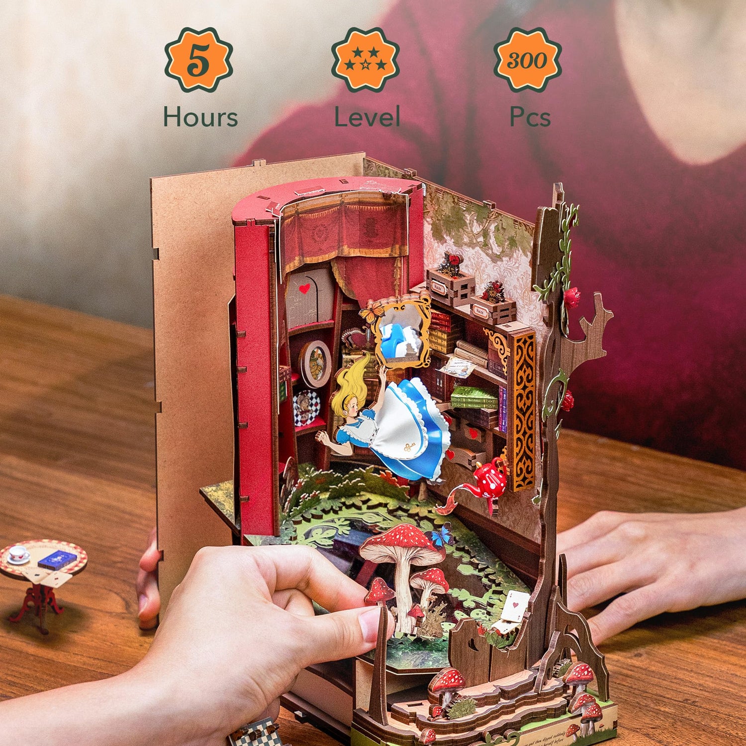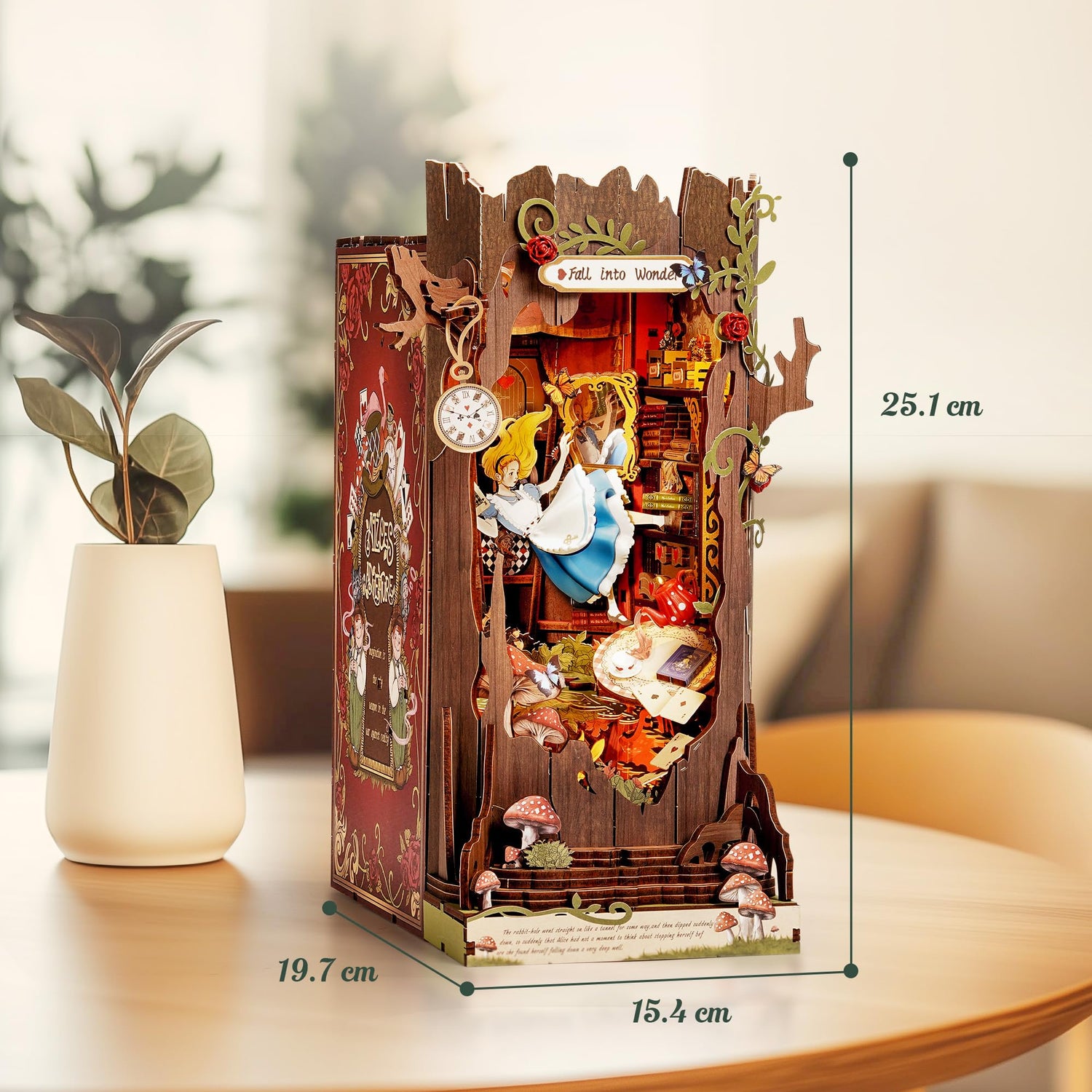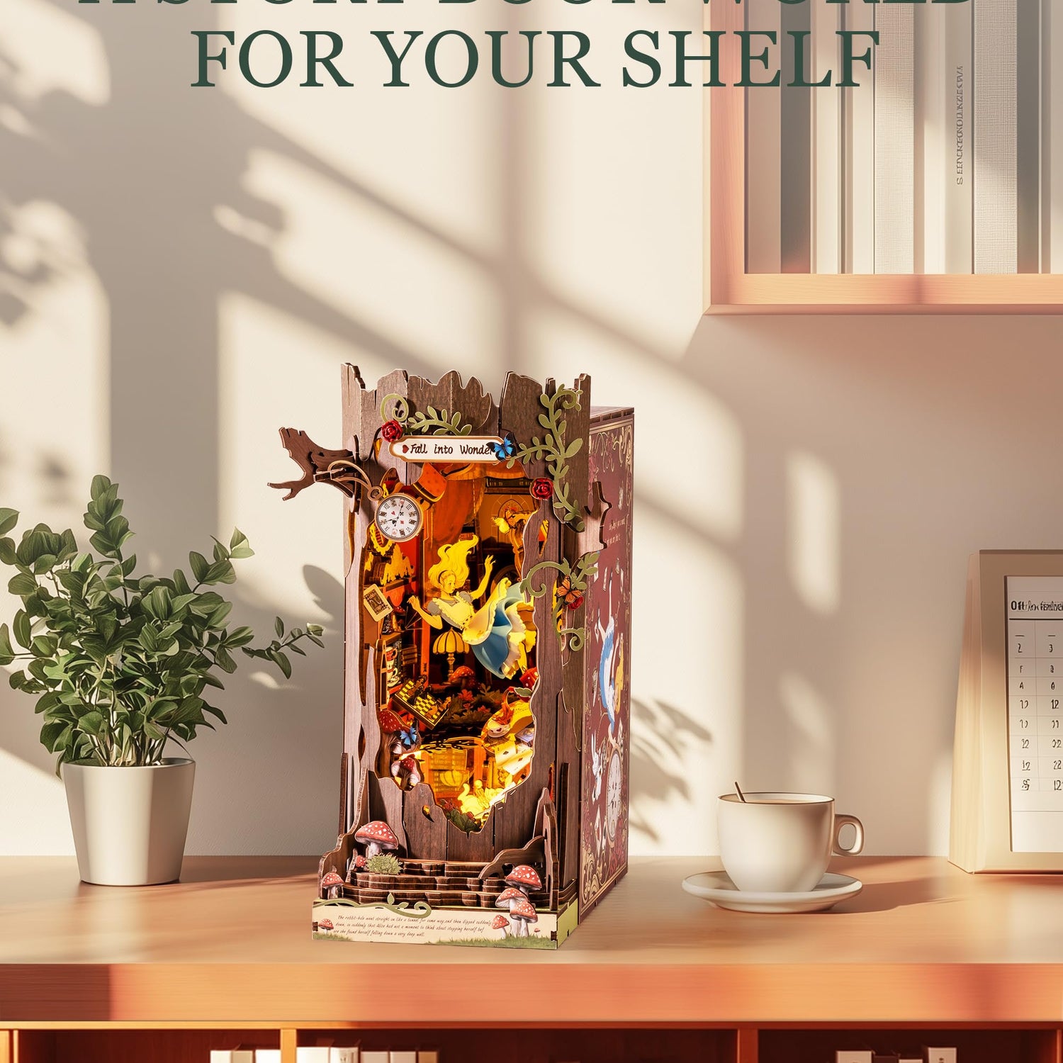 Rolife DIY Book Nook Kits Fall into Wonder, Fairy Tale Bookend Wooden 3D Puzzles for Bookshelf Decor, DIY Miniature House Building Kit for Adults, DIY Crafts/Surprised Gifts for Teens & Book Lovers