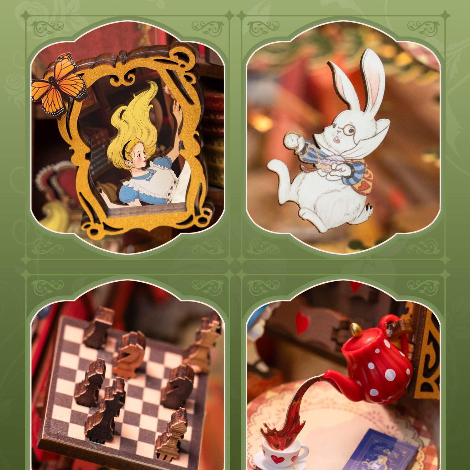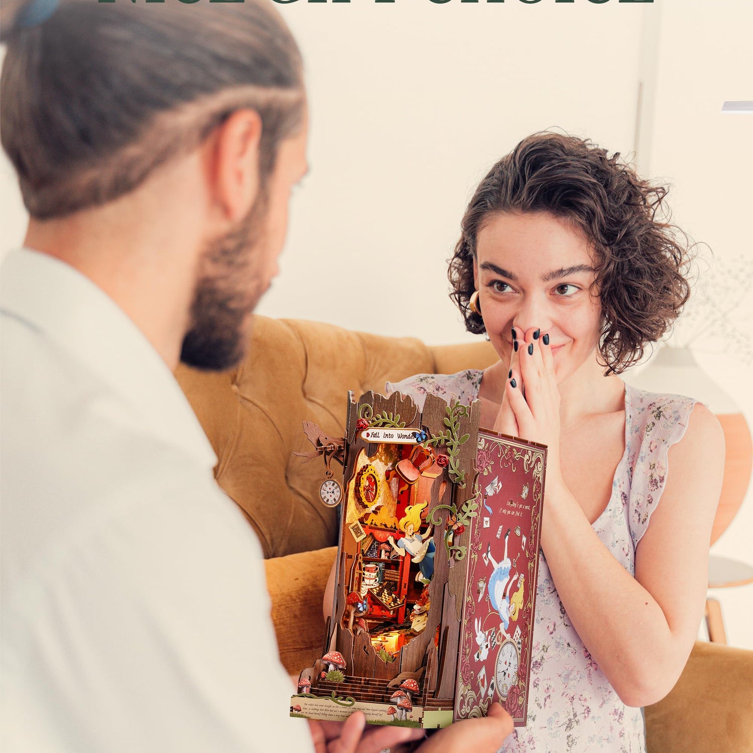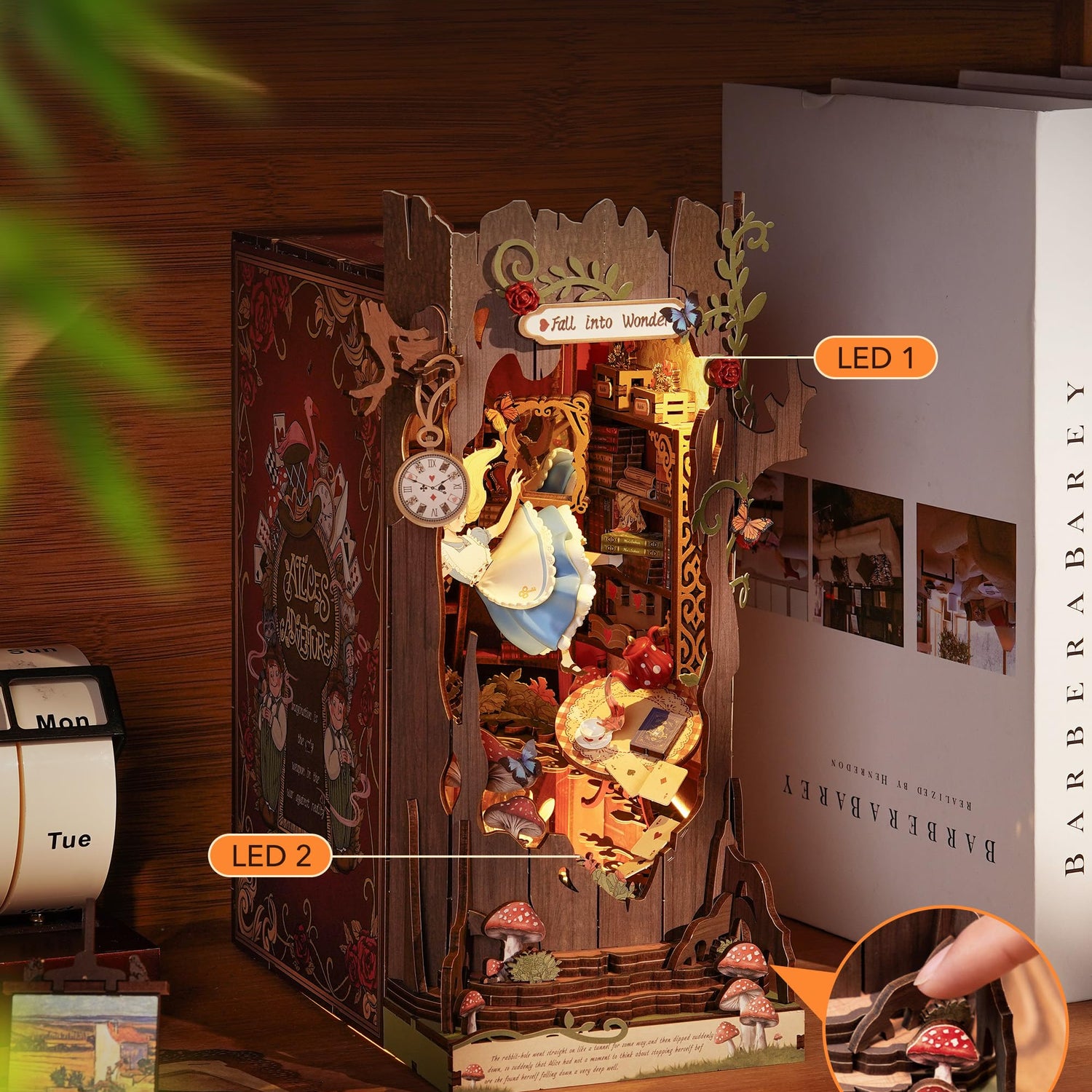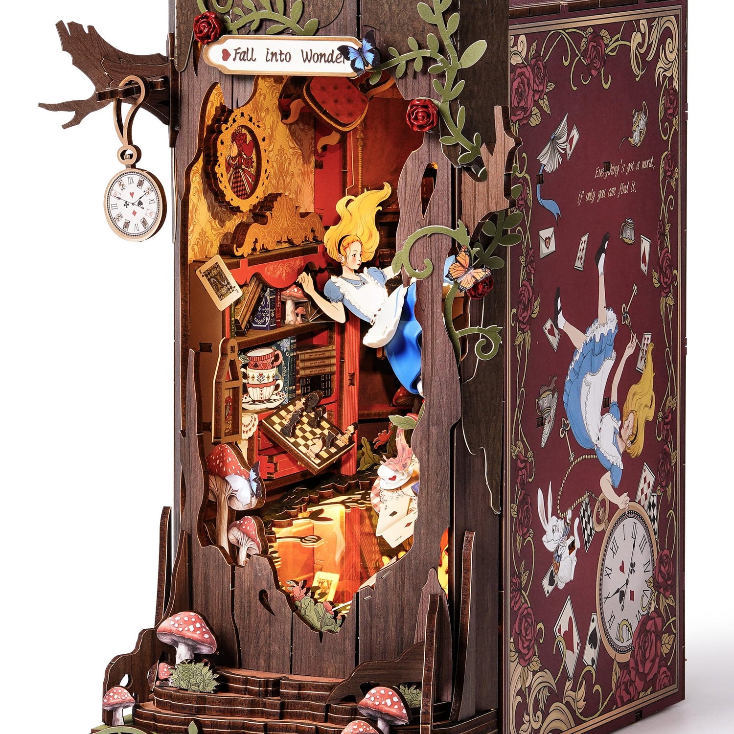 Rolife DIY Book Nook Kits Fall into Wonder, Fairy Tale Bookend Wooden 3D Puzzles for Bookshelf Decor, DIY Miniature House Building Kit for Adults, DIY Crafts/Surprised Gifts for Teens & Book Lovers