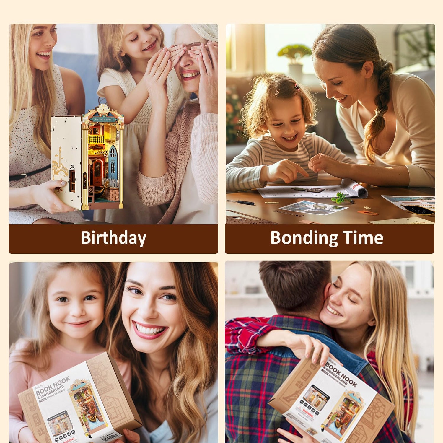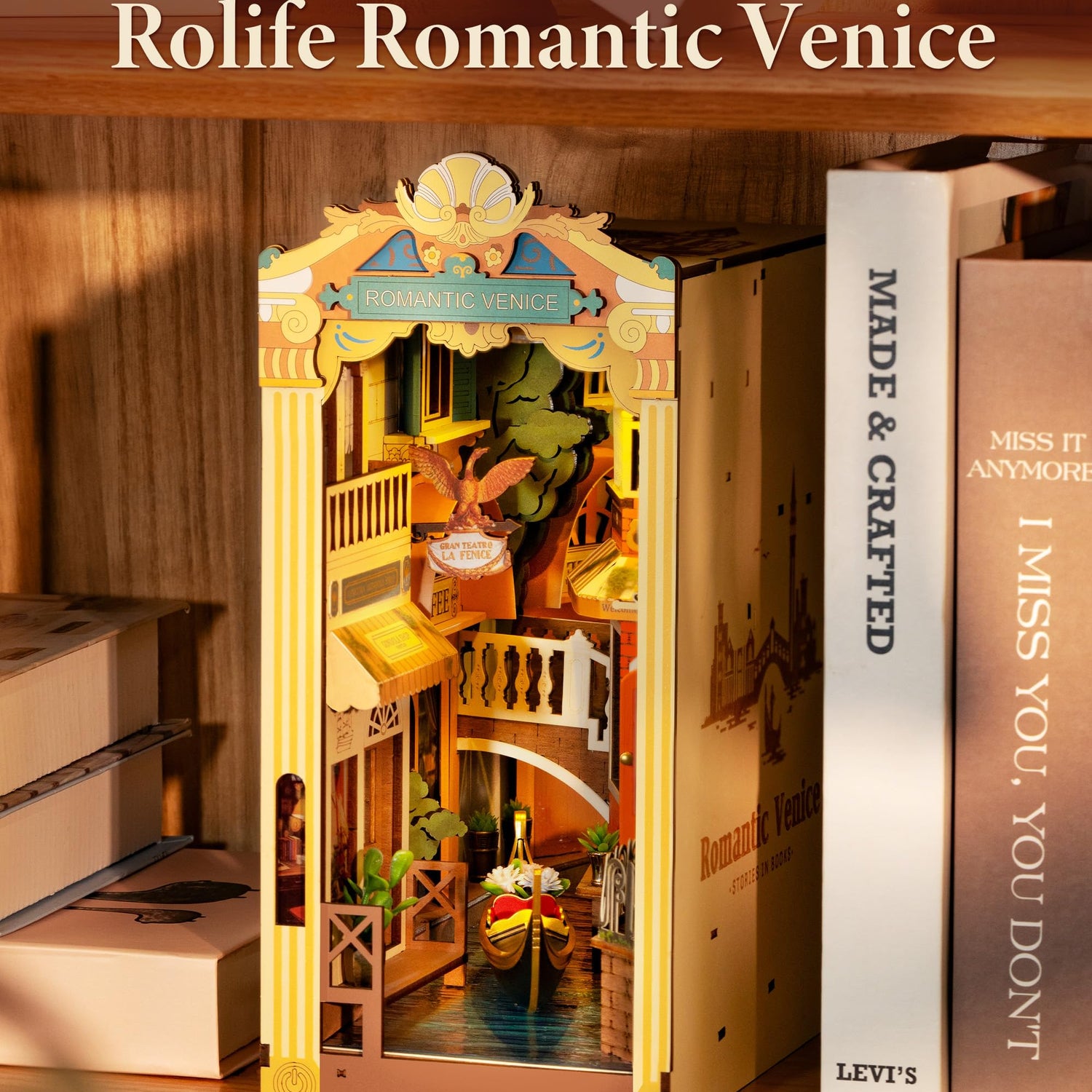 Rolife DIY Book Nook Kits for Adults 3D Wooden Puzzle-Bookshelf Insert Booknook-Miniature Kit-Gifts for Boys Girls (Romantic Venice)