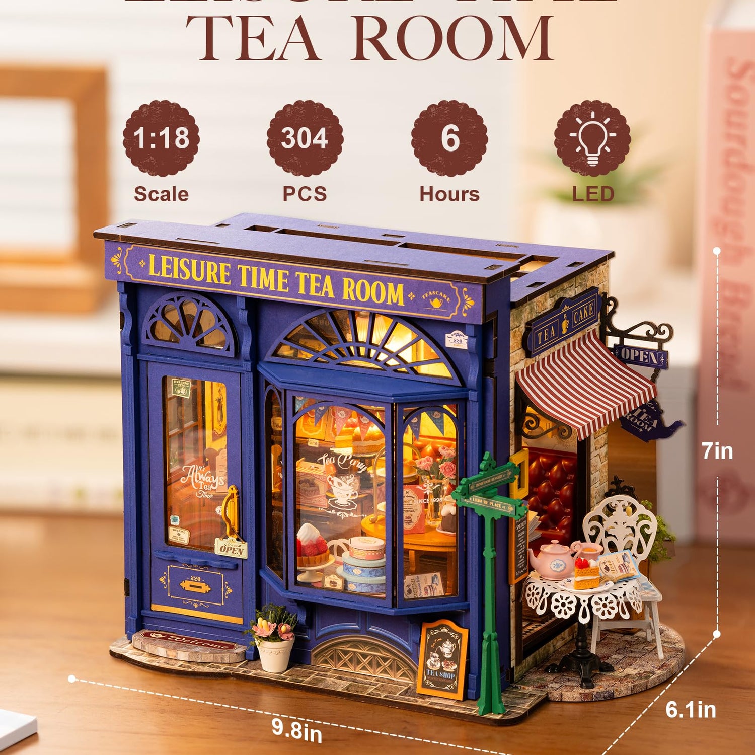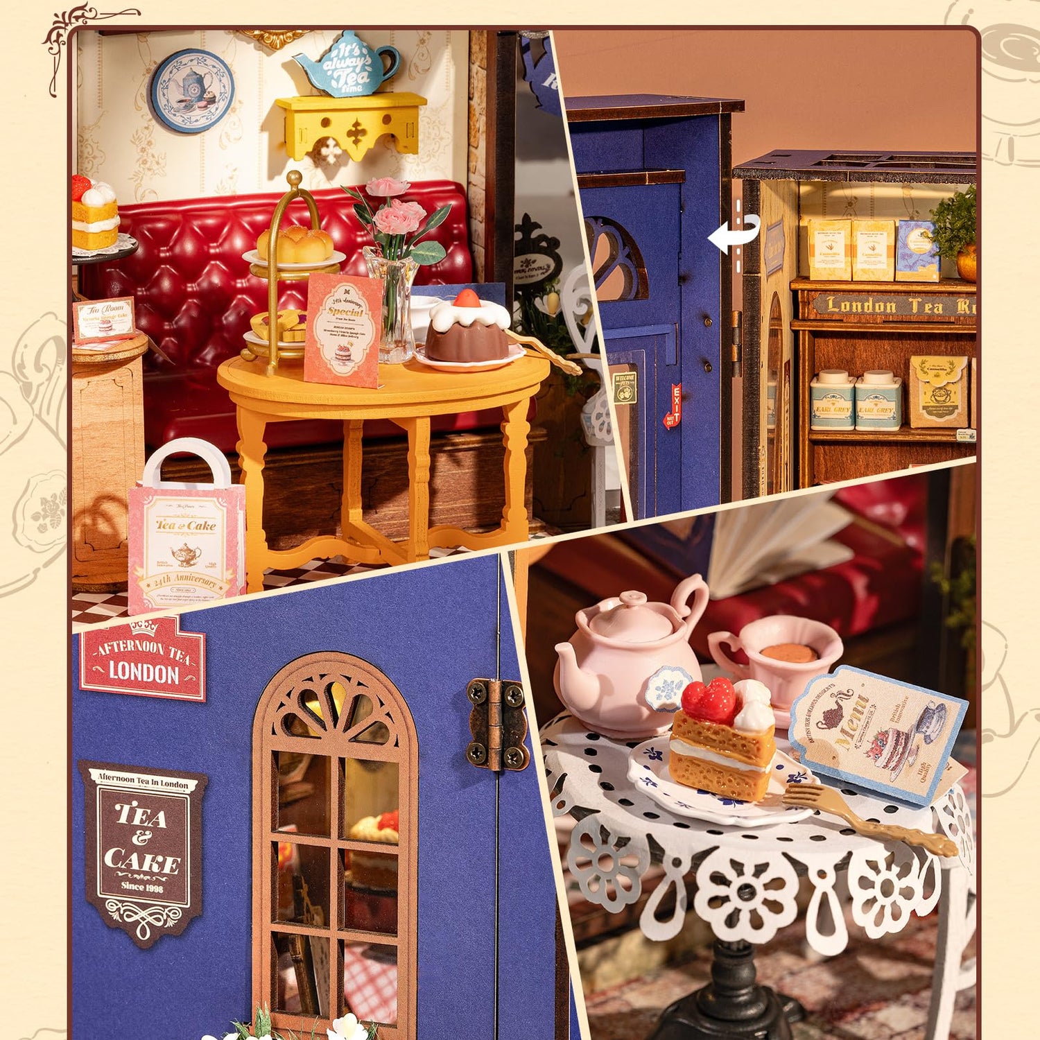 Rolife DIY Dollhouse Miniature House Kit 1:18 Edwardian Tea Room with Openable Facade, Diorama Building Model Kit Crafts for Adults Home Decor Creative Gift for Boys Girls