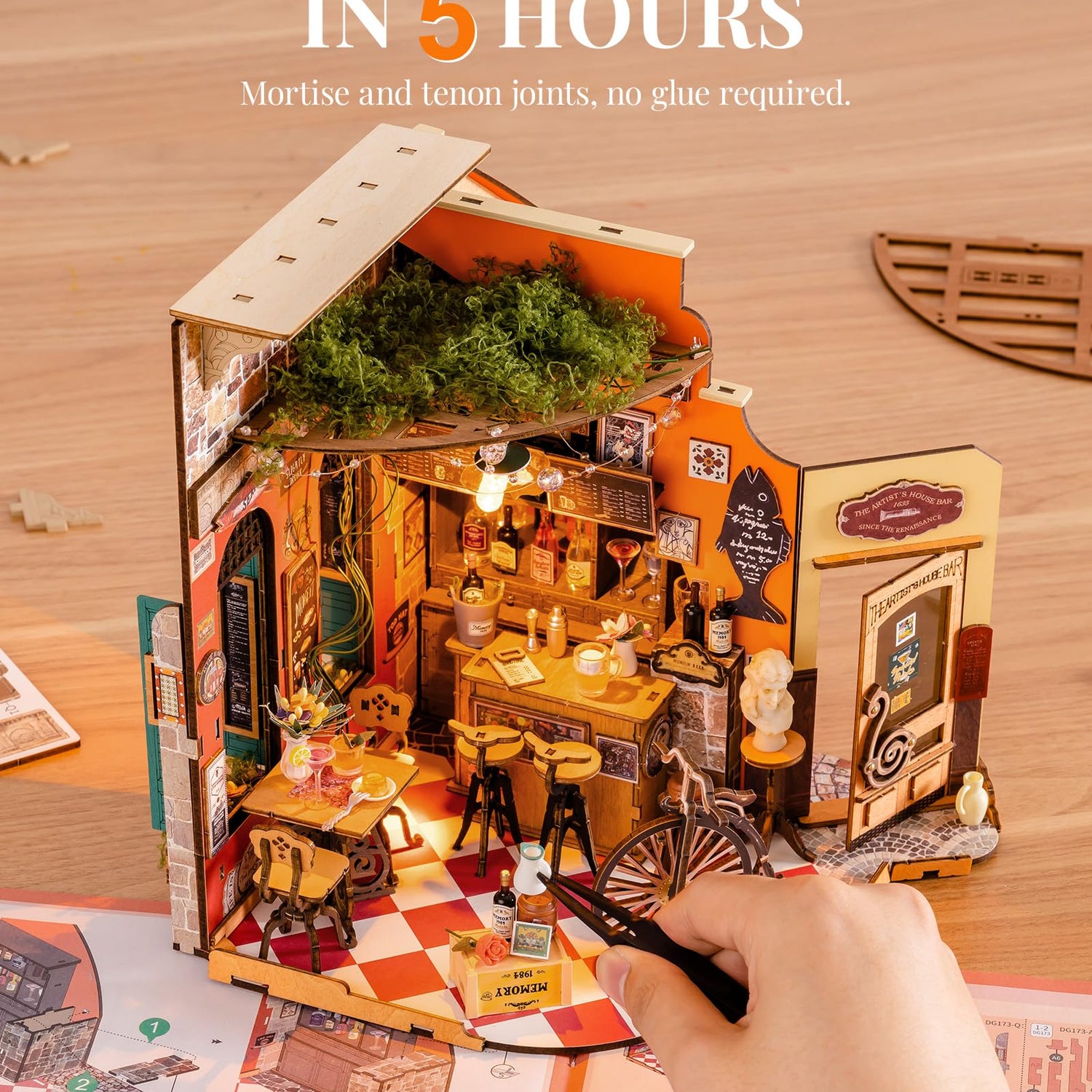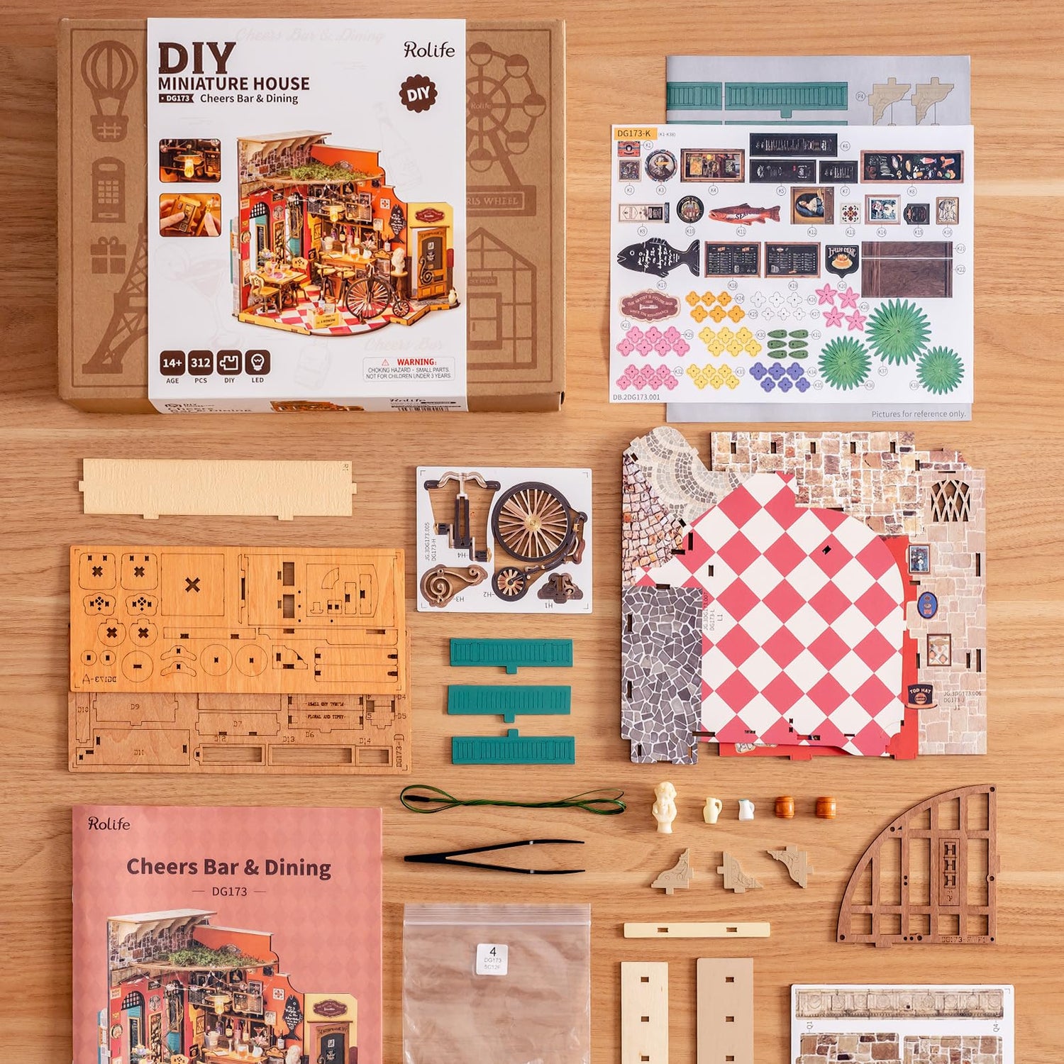 - 🏠 ROLIFE CRAFTSMANSHIP: Crafted from precision laser-cut wood, this rolife miniature kit offers detailed bar furniture and accessories, ideal for DIY lovers and miniature enthusiasts.