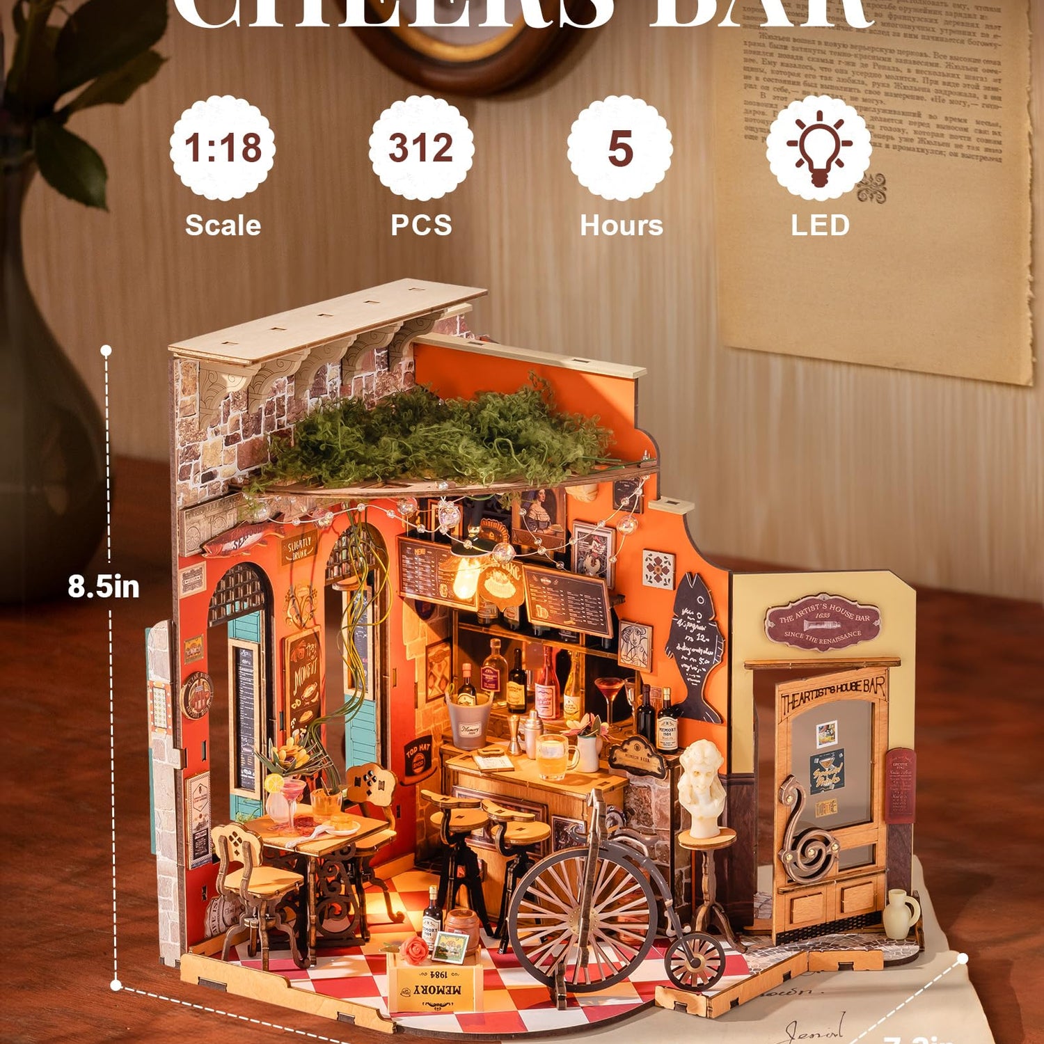 - 🍸 BAR AMBIENCE: This diy book nook kit features an openable miniature Cheers Bar scene, perfect as a bookshelf decor and a charming display for adult collectors and hobbyists.