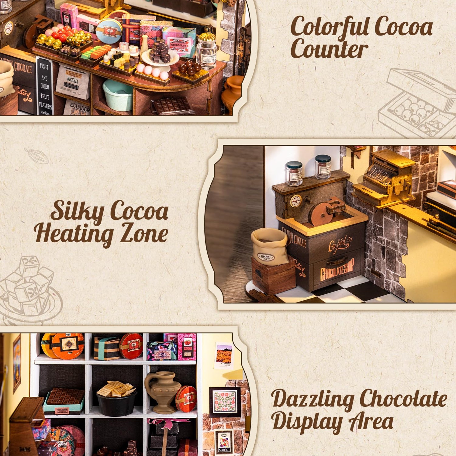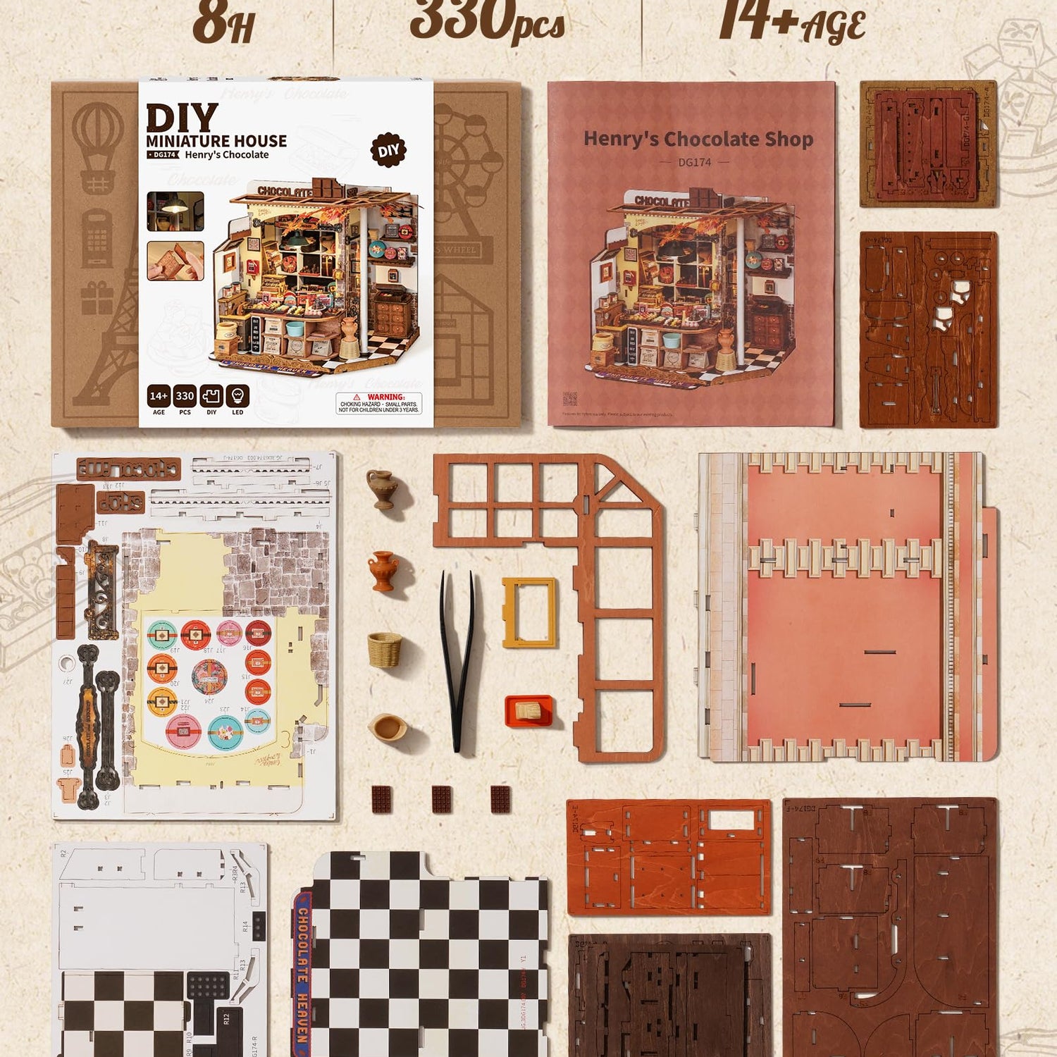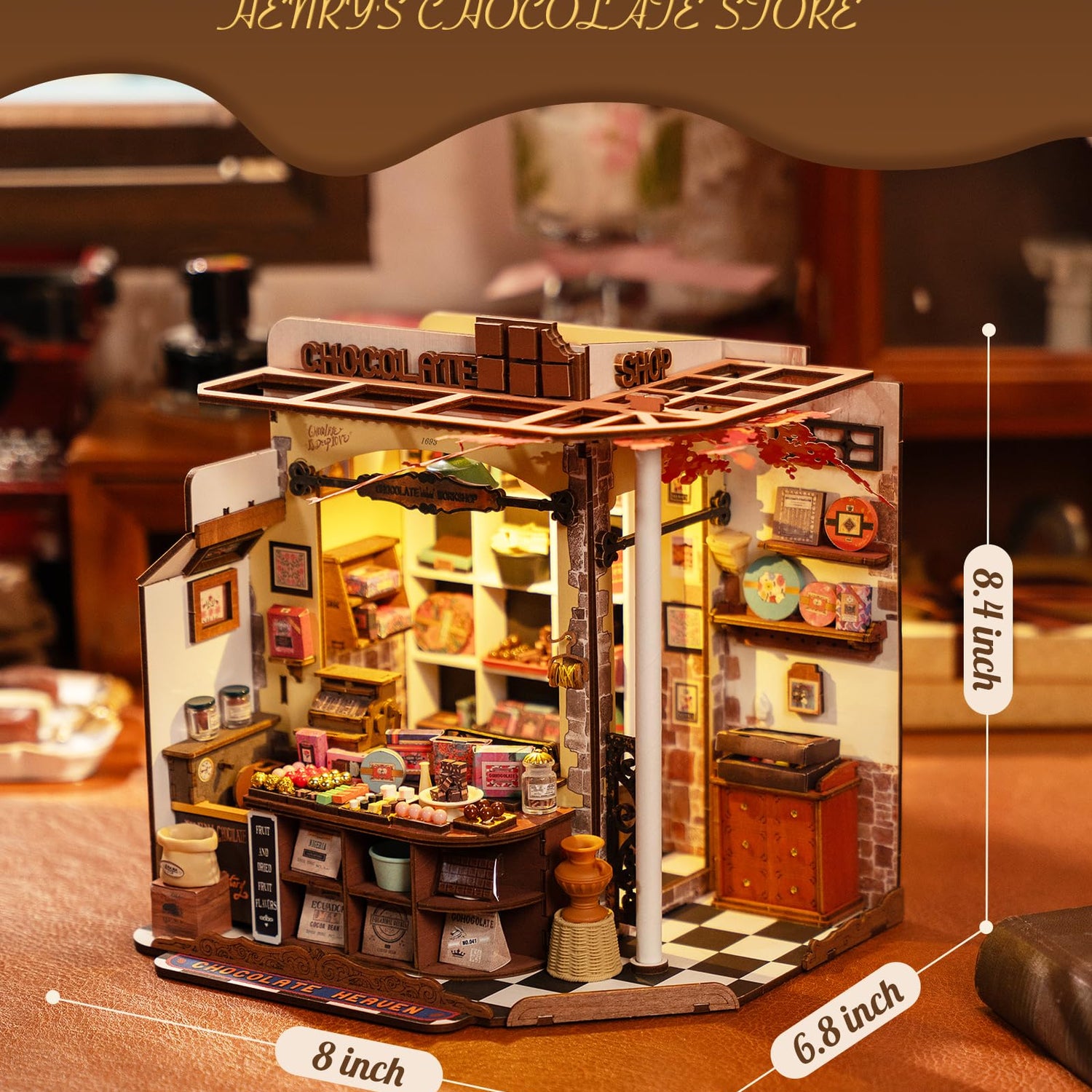 Rolife DIY Miniature House Kit Henry's Chocolate Shop, Tiny House Book Nook for Bookshelf Decor, 3D Puzzles Model Building Kits for Teens, Birthday Gifts/Craft Kits for Girls Boys (Henry's Chocolate)