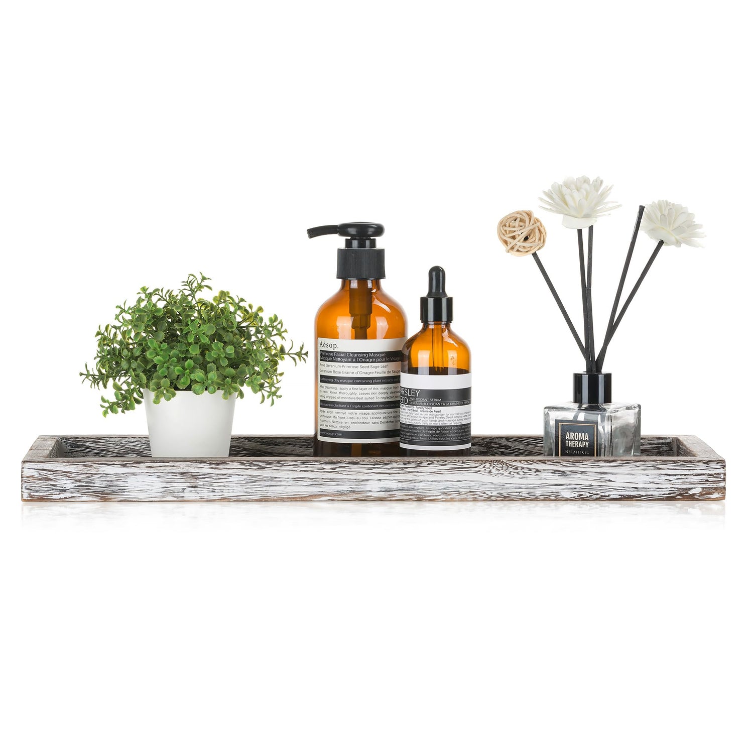 - Versatile Use - The rectangle wood tray decor measures 15" x 5", a perfect size for flameless pillar candle, sphere candles, small plant, vases, jewelry, tv remote, oil, salt, pepper, spice, coaster, napkin, perfume, toiletry and cosmetics storage