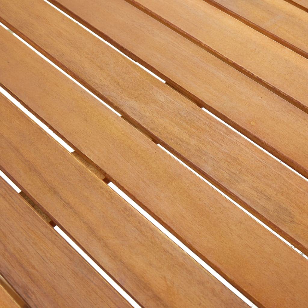- This patio table is made of solid acacia wood with an oil finish, which is a hardwood with dense grains. Rough acacia wood has the strength to bear the weight, and also stand the wear and tear of time. This wooden table is stable, durable and weather-resistant. The sturdy tabletop is ideal for dining and placing decorative items such as vases or potted plants. Additionally, the oil-finished surface makes it easy to clean with a damp cloth. Thanks to its lightweight design, the table is easy to