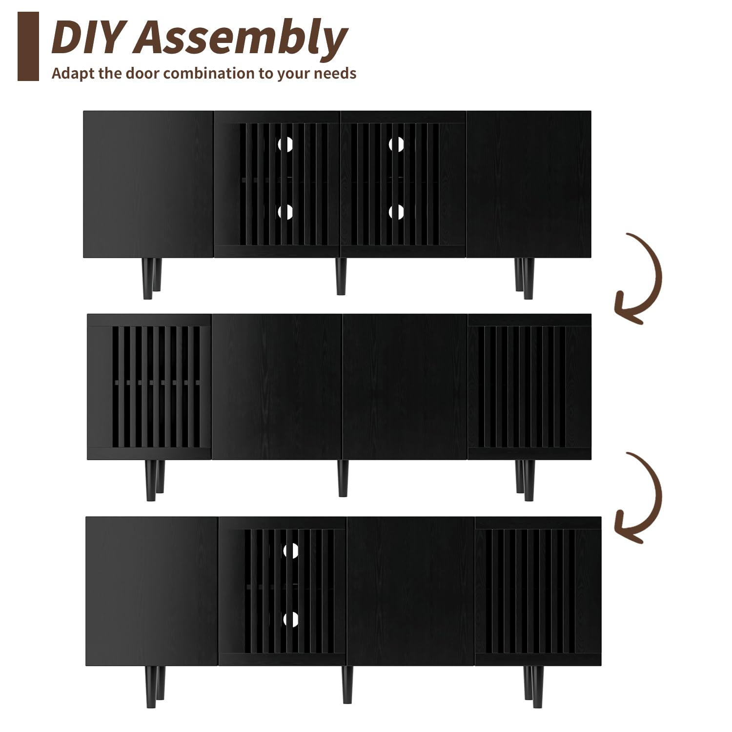 - Spacious Storage & DlY Doors: With four DIY doors and adjustable shelves, this TV table allows you to customize your storage space according to your needs; It's perfect for housing gaming consoles, media players, or other accessories in your living room TV stand