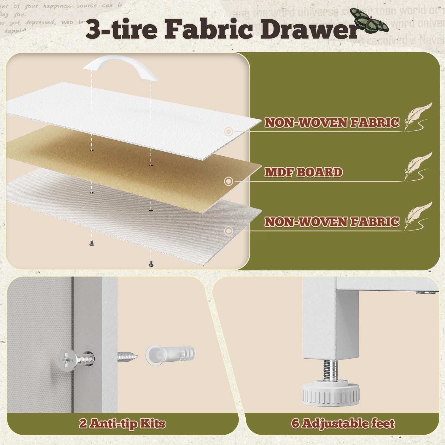 - 【Sturdy & Secure Construction】Built with a sturdy steel frame for stability, this unit includes 4 adjustable feet to prevent wobbling and protect floors. 2 anti-tip kits is also included for added safety. This organizer is tough enough to handle all your organize needs
