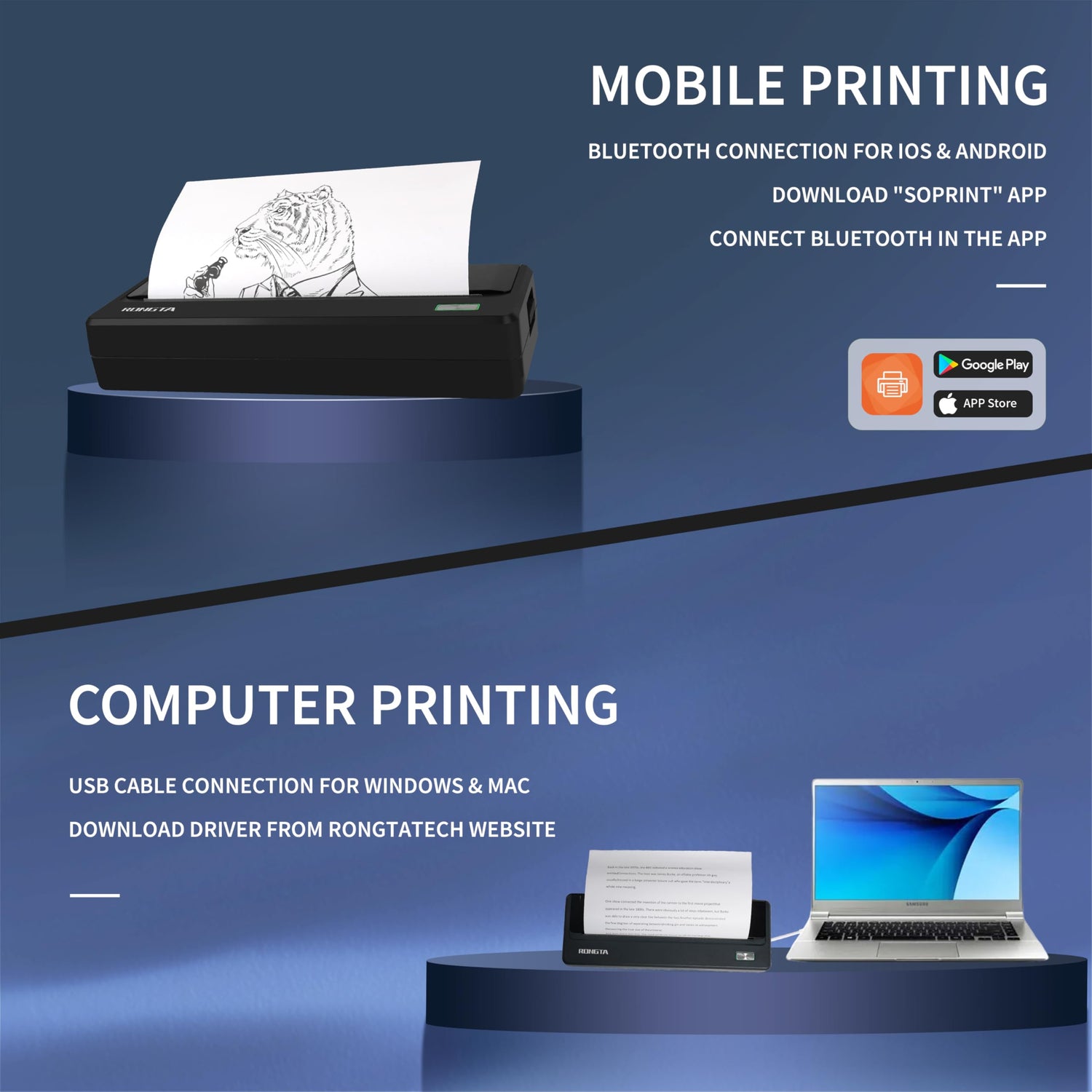 - 【Seamless Bluetooth & USB Connectivity】 The PN81 pairs wirelessly with Android/iOS devices via Bluetooth and connects to laptops or desktops through USB, offering simple setup and compatibility across devices. Download the "SoPrint" app for quick and reliable printing on mobile devices.