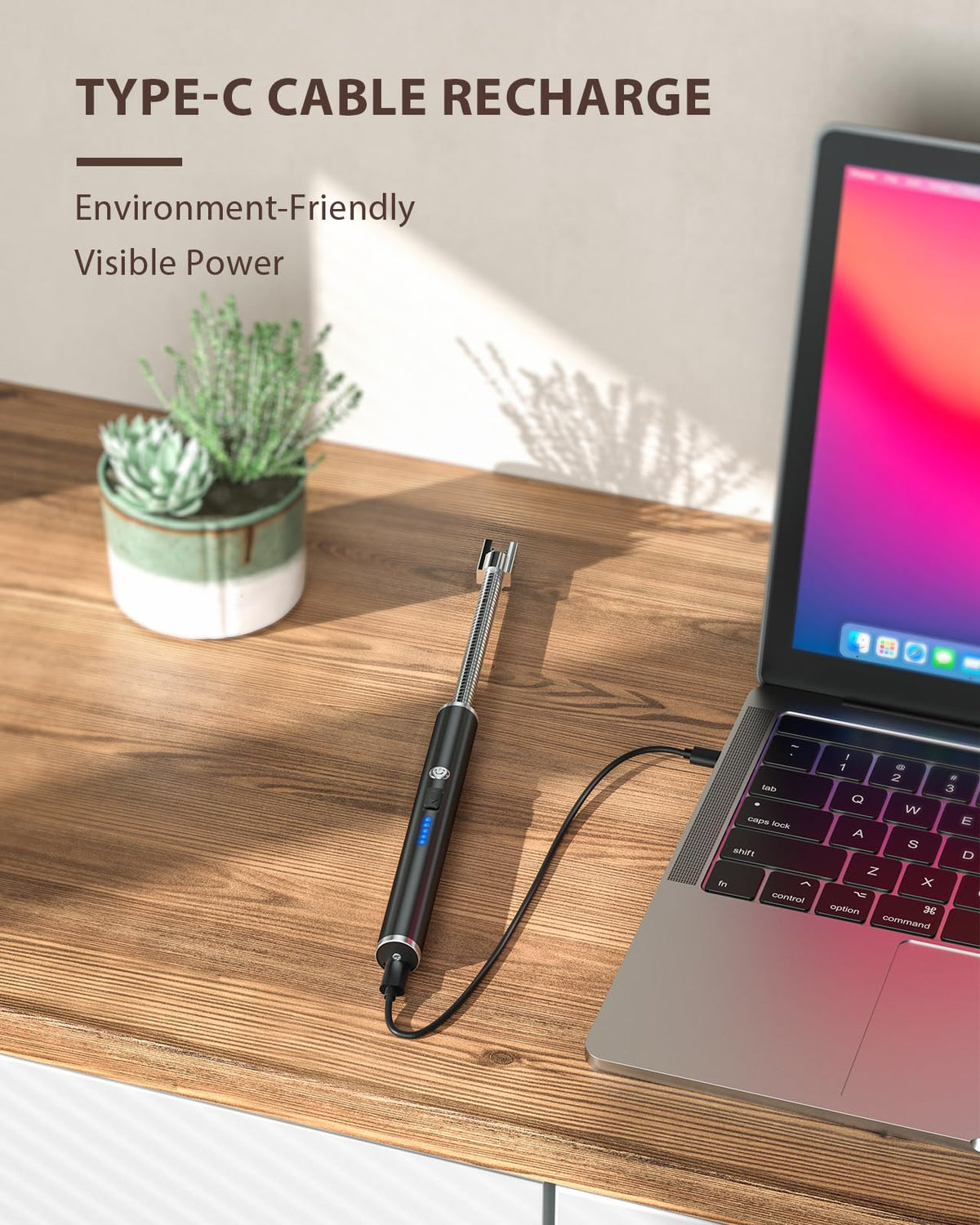 RONXS Candle Lighter, Electric Lighter, Rechargeable Type C Lighters Arc Lighter with LED Battery Display, Flameless Long Lighters for Candles Grill BBQ Camping (Black)