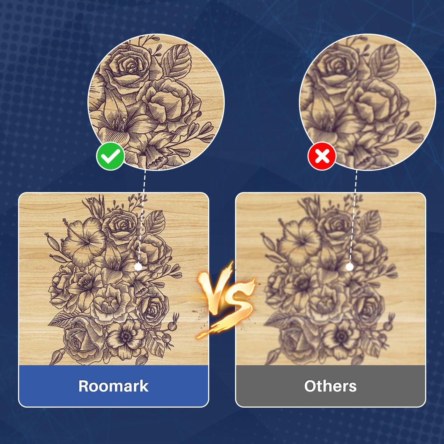 - [High Precision]Roomark laser engraver is equipped with high engraving accuracy for rendering minute details and superior quality results."