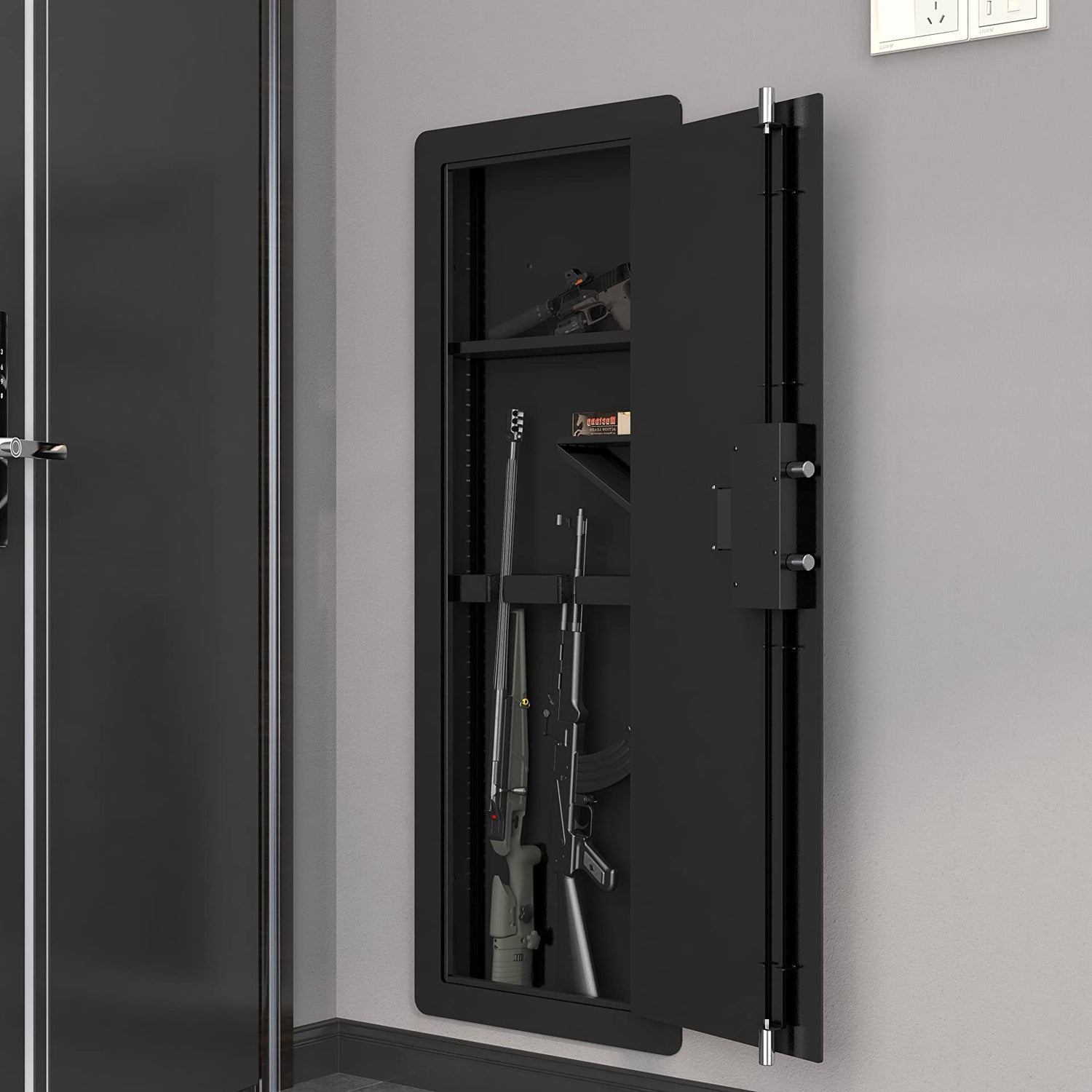 - Made from high-quality materials, this wall gun safe offers robust protection against unauthorized access and physical damage. The durable design ensures your firearms are kept safe and secure, providing peace of mind whether you are at home or away.