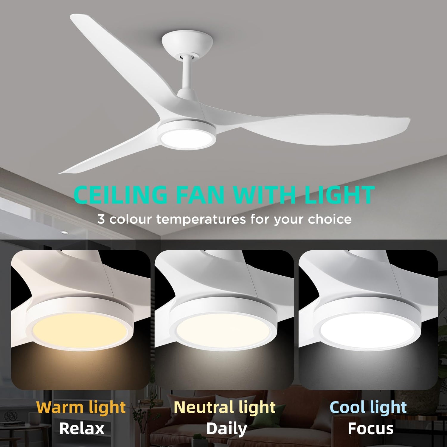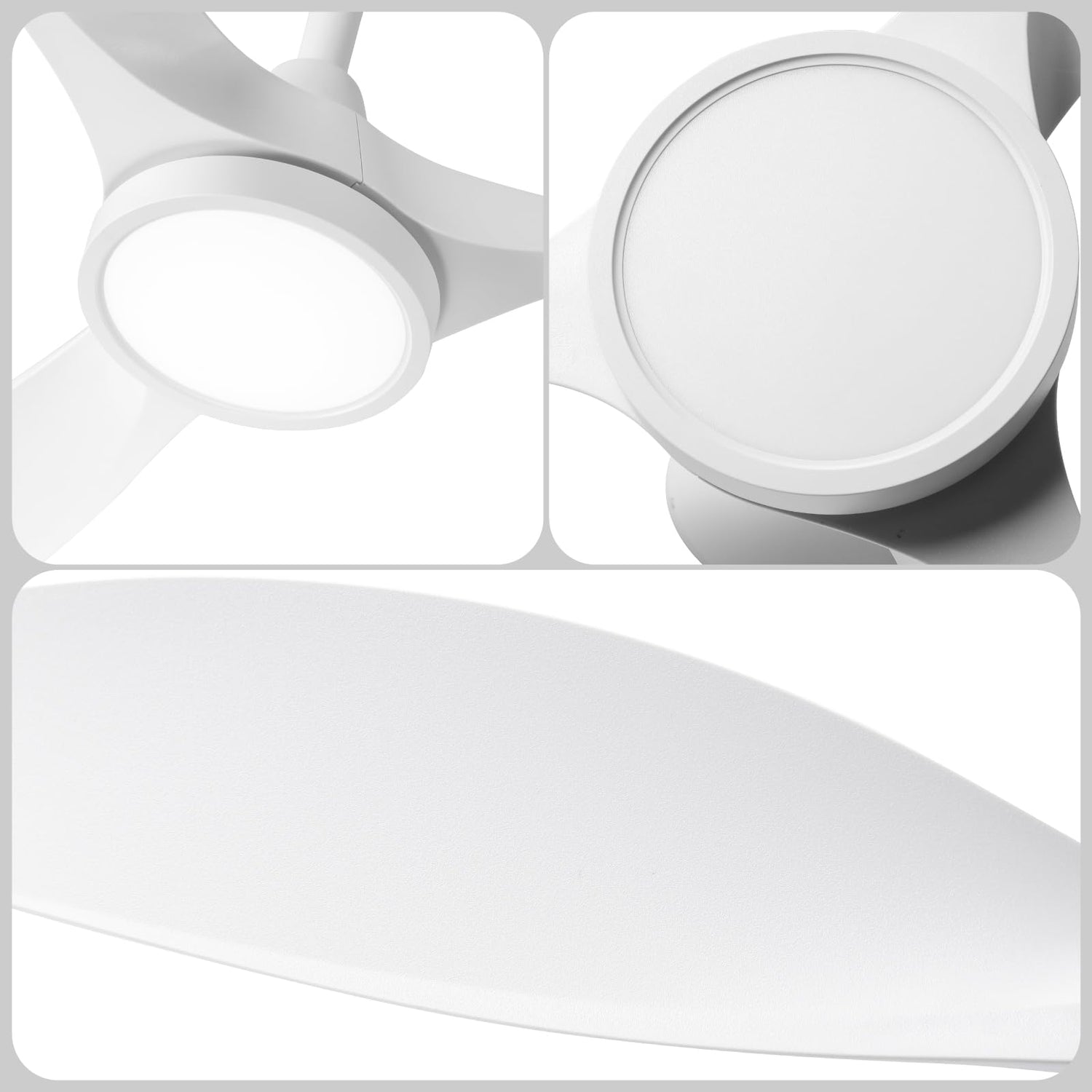 Roomratv Ceiling Fans with Lights,Large Airflow 52inch Modern Ceiling Fan with Quite Reversible DC Motor 3 Color Temperature LED Light (White)