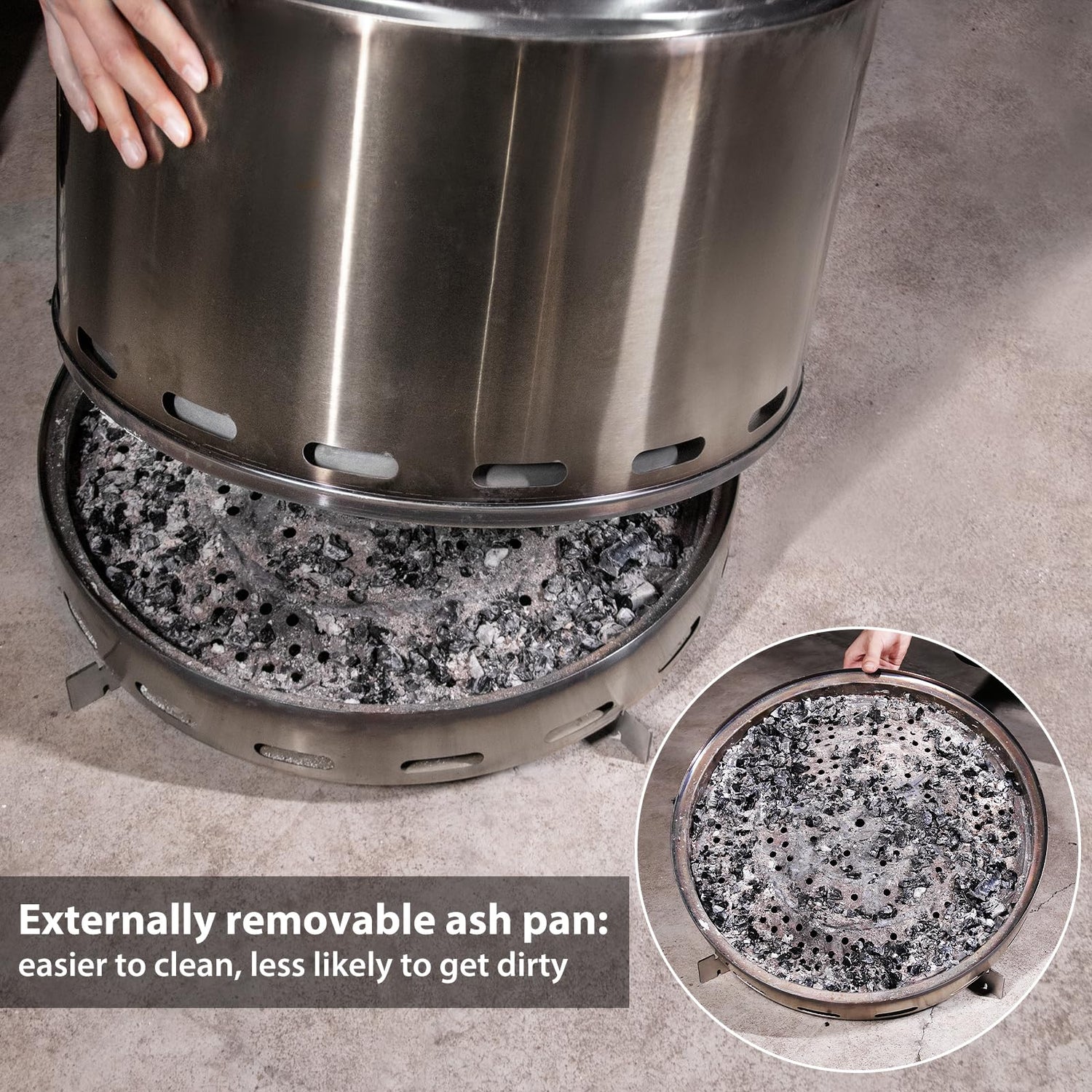 - Portable and Easy Cleanup: Designed for effortless portability, this smokeless firepit for outside comes with a handy carry bag, making transport and storage a breeze. With a detachable ash pan, cleaning up is easy, enabling swift ash removal and low maintenance. Easy setup and care make it perfect for both backyard events and outdoor excursions, allowing you to dedicate more time to relaxation and fun.