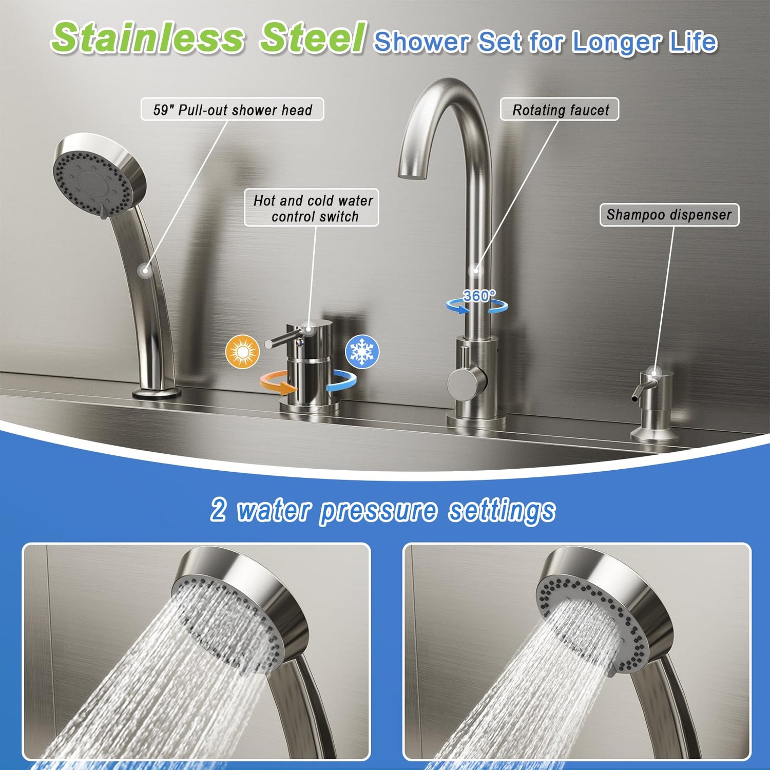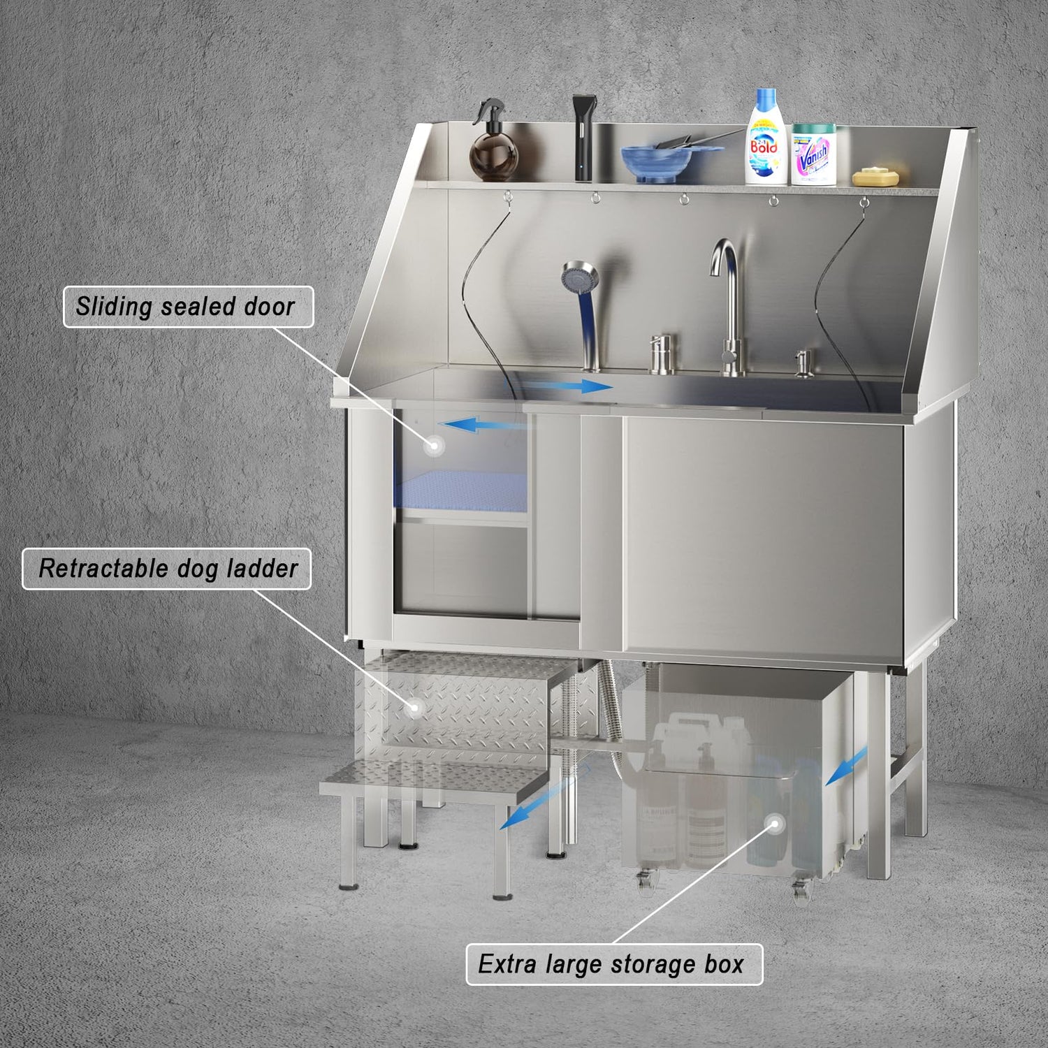 - CONVENIENT DESIGN: This pet bathtub comes with a built-in sink and stainless steel basin for easy bathing and grooming of your furry friend.