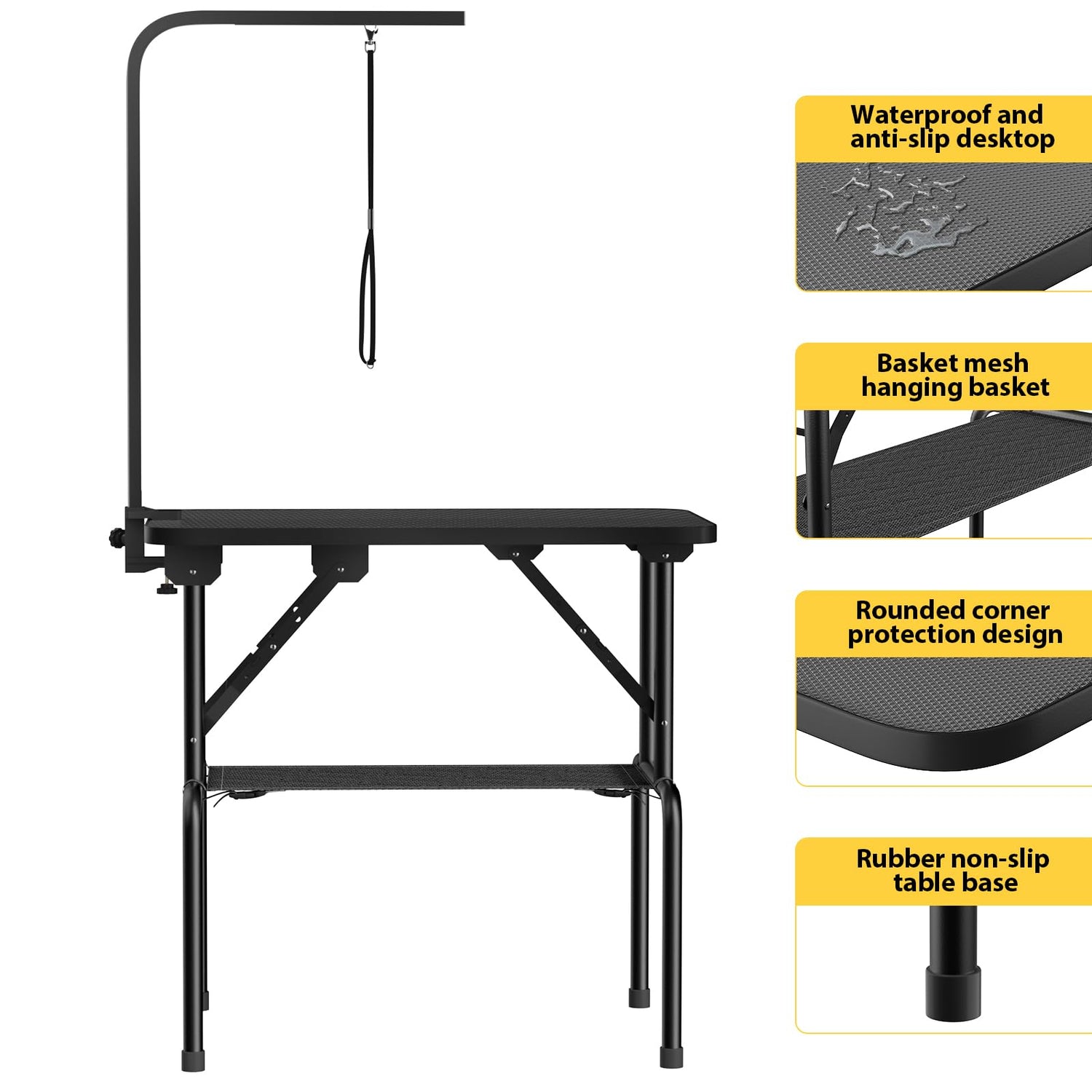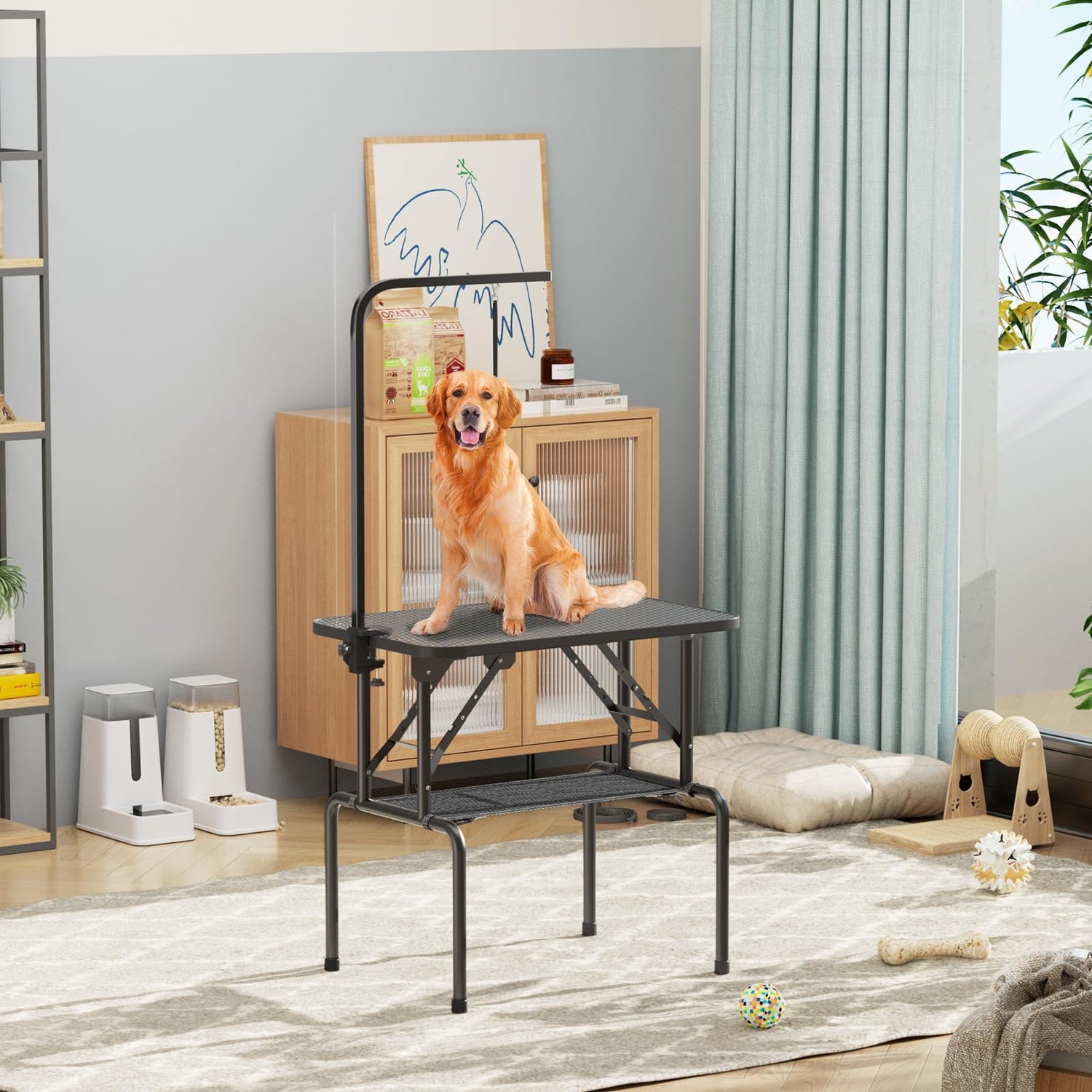 ROOMTEC 32 Inch Dog Grooming Table,Foldable Pet Grooming Tables at Home with Adjustable Arm,Nooses, Mesh Tray
