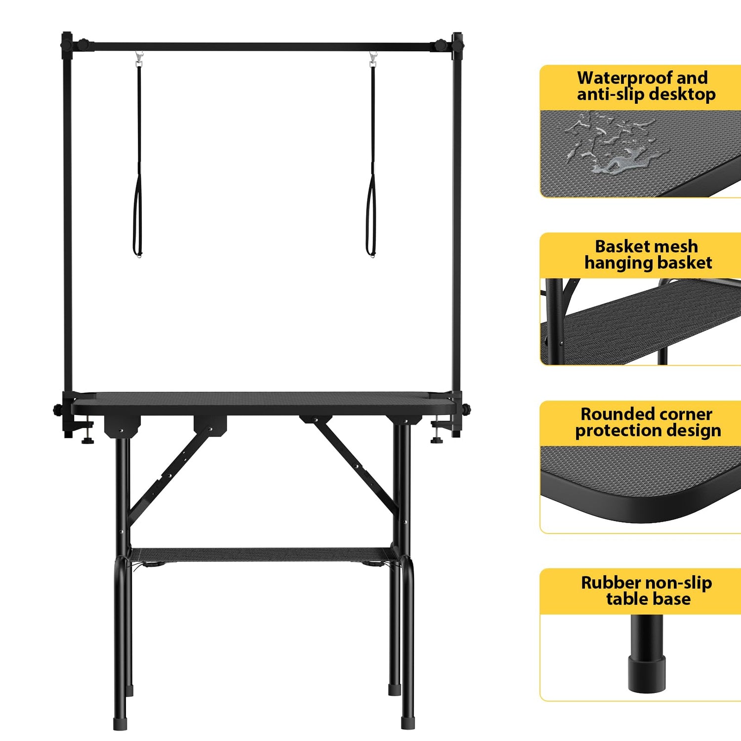 ROOMTEC 36 Inch Dog Grooming Table,Foldable Pet Grooming Tables at Home with Adjustable Arm,Nooses, Mesh Tray