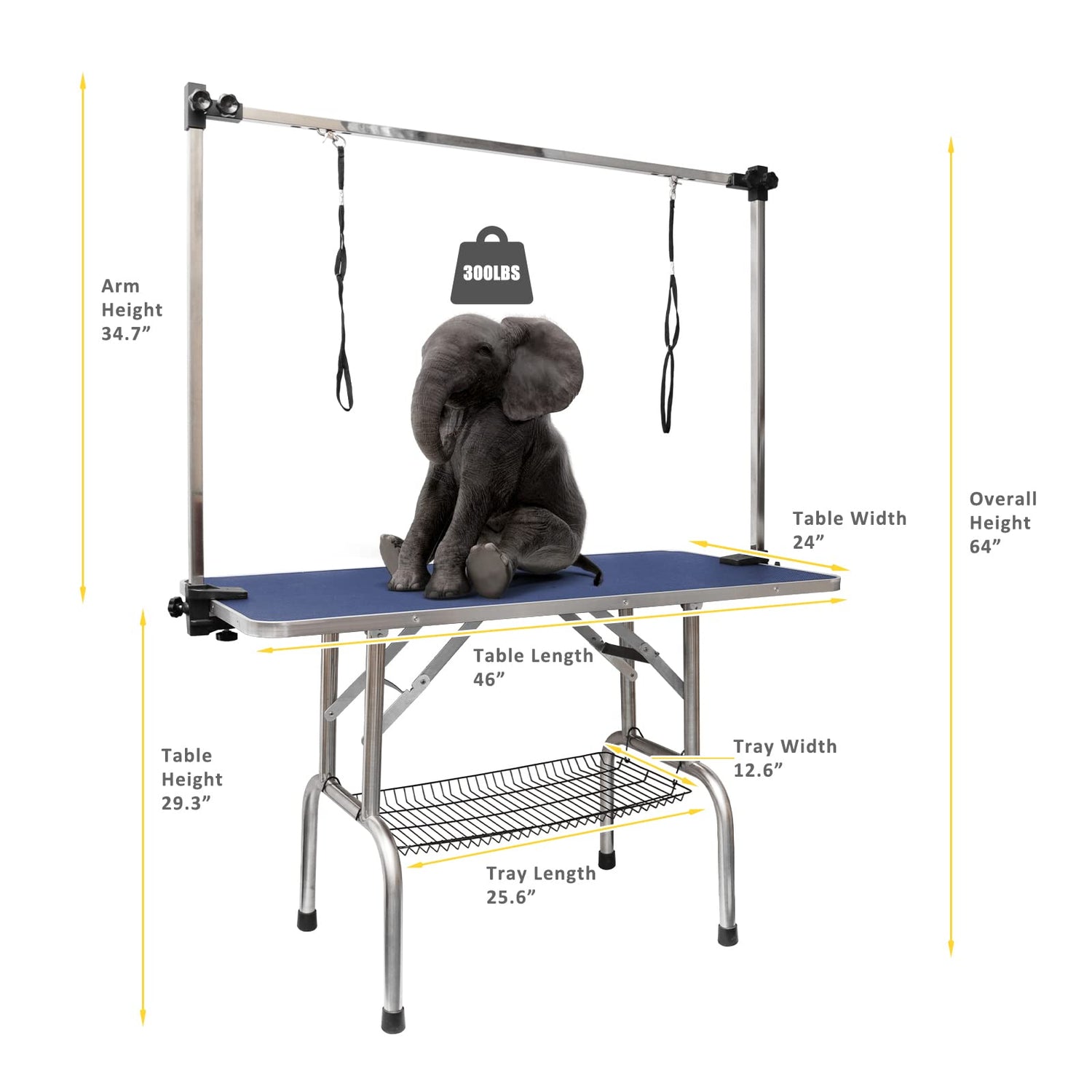 - 【Grooming table for large and small dogs】The table measures 46"*24"*29.3" and can hold up to 300BLS, which means it can be used for most breeds of dogs, and the excellent stainless steel material also provides longer lasting use for the pet table