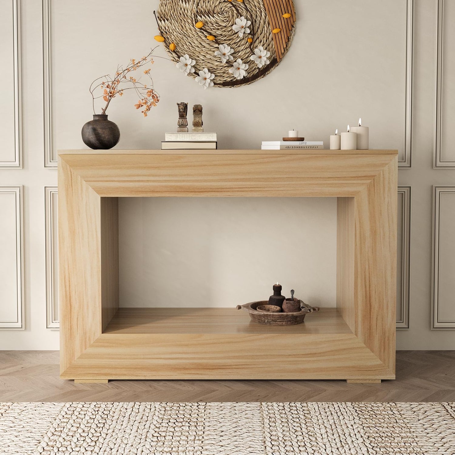 - CONSOLE TABLE WITH STORAGE: The console table measures 47.2"W x 11.8"D x 32.8"H. This entryway console table provides ample storage space for storing and displaying sundries and decorative items. You can use it to store lamps, magazines, or laundry baskets to keep your home neat and organized