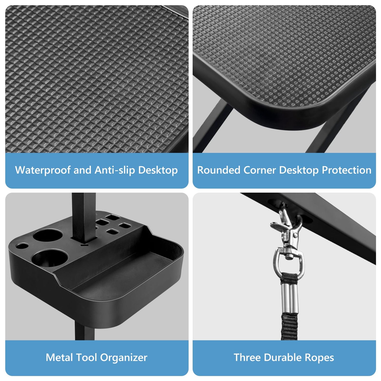 ROOMTEC 47 Inch Dog Grooming Table,Adjustable Height Pet Grooming Table,with Tool Organizer, Anti Slip Tabletop,Easy to Move