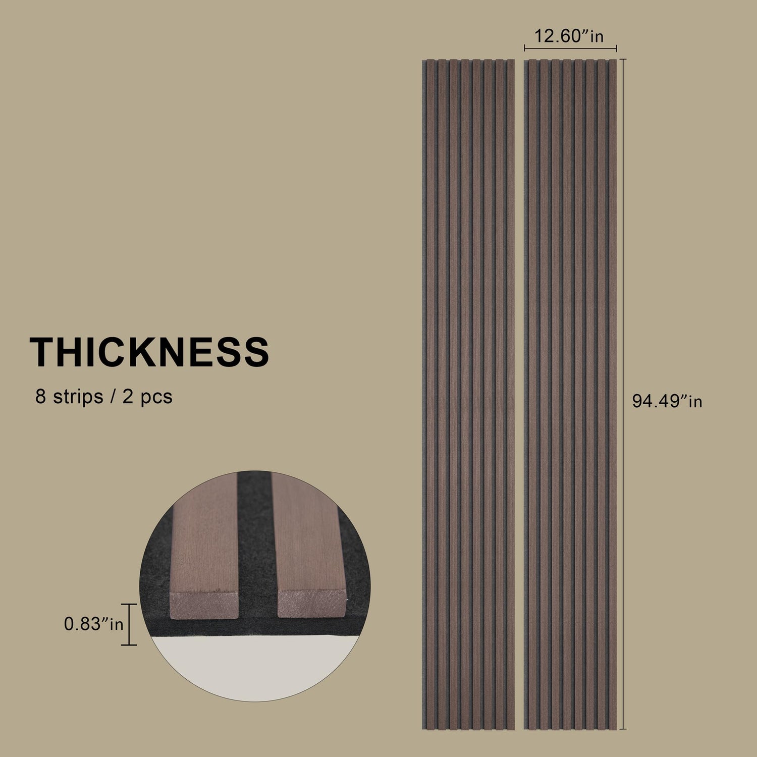 ROOMTEC Acoustic Wood Wall Panels, 2 Pack 94.49” x 12.6” Soundproof Wall Panels, Wood Slat Wall Panels for Wall Decor (Walnut)