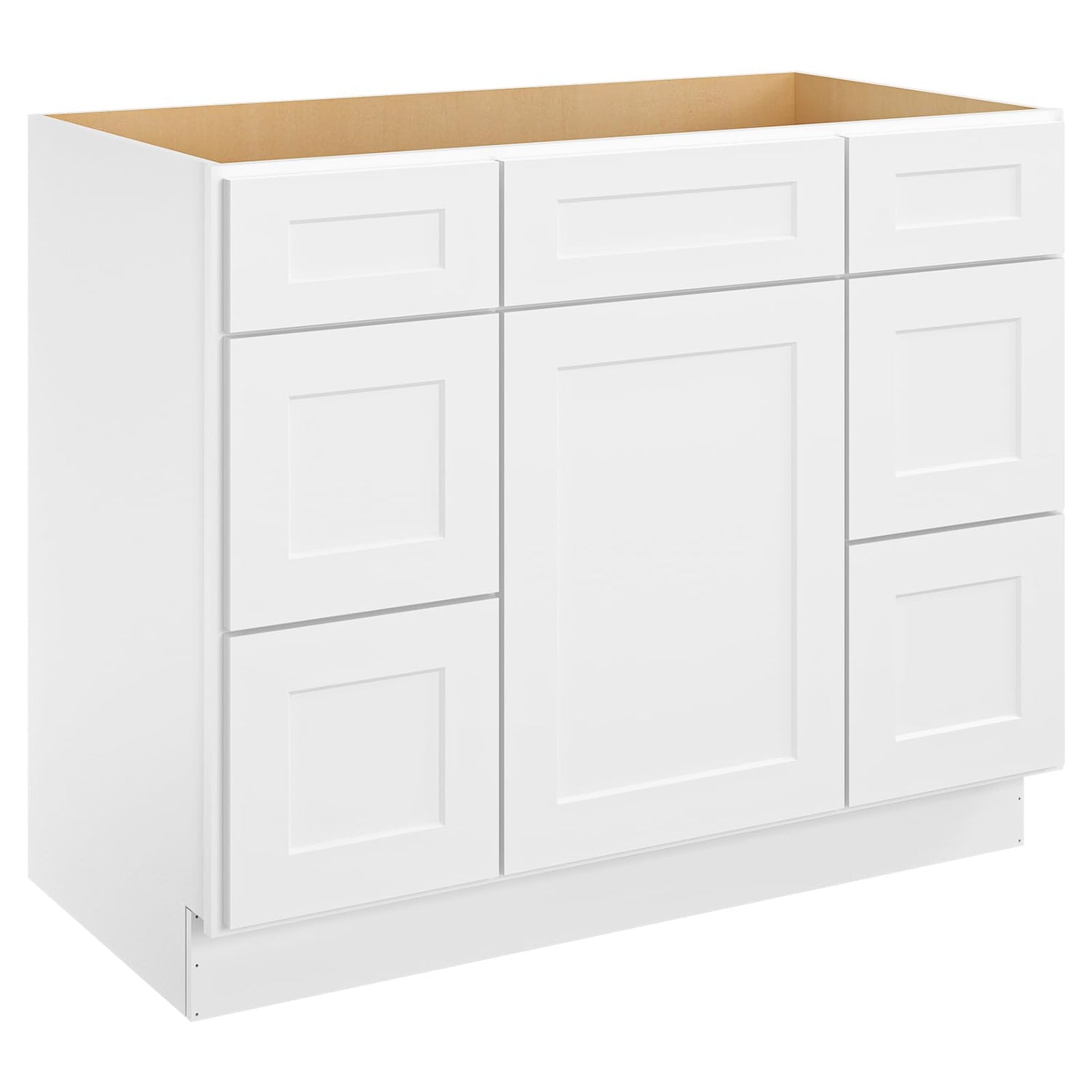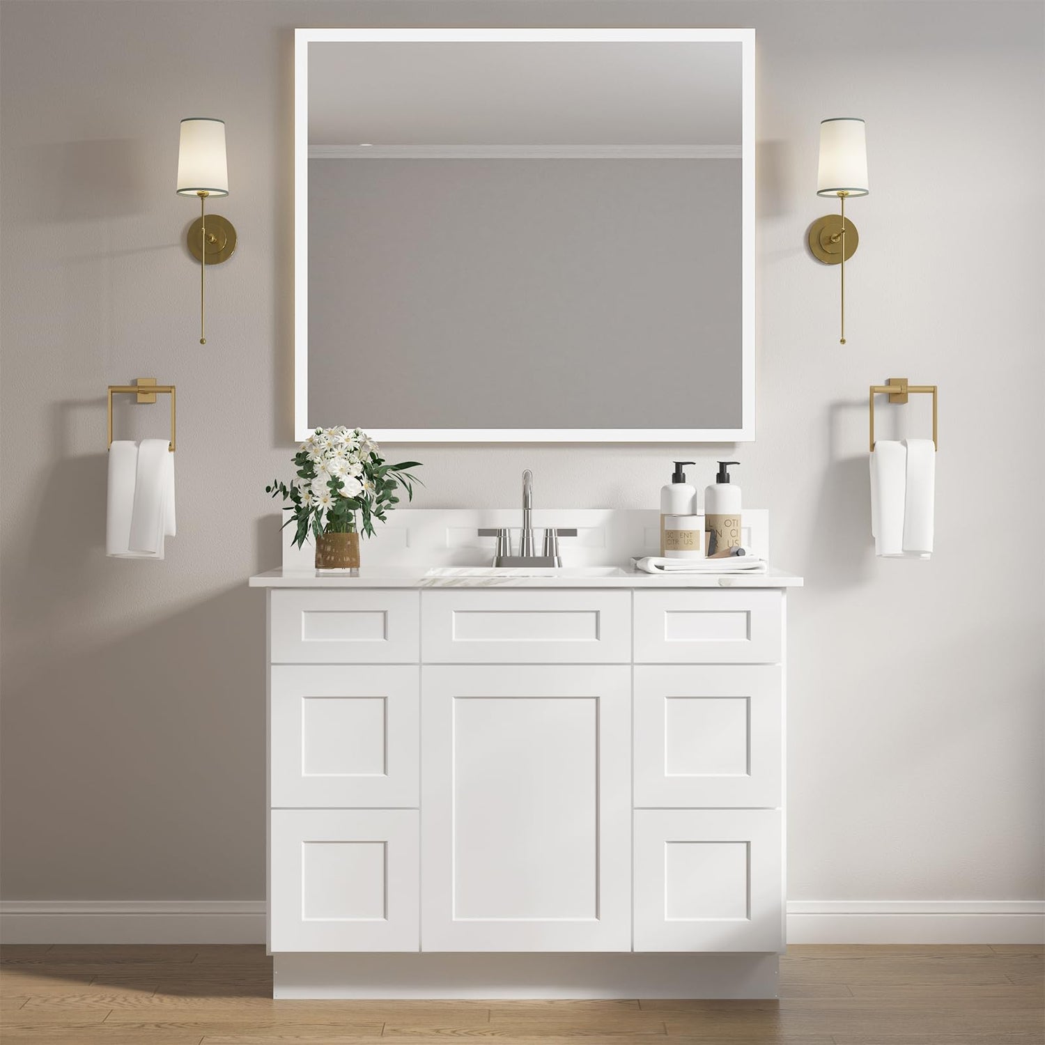 ROOMTEC 42'' Shaker White Free Standing Bathroom Vanity with 6 Drawers and Soft-Close Door
