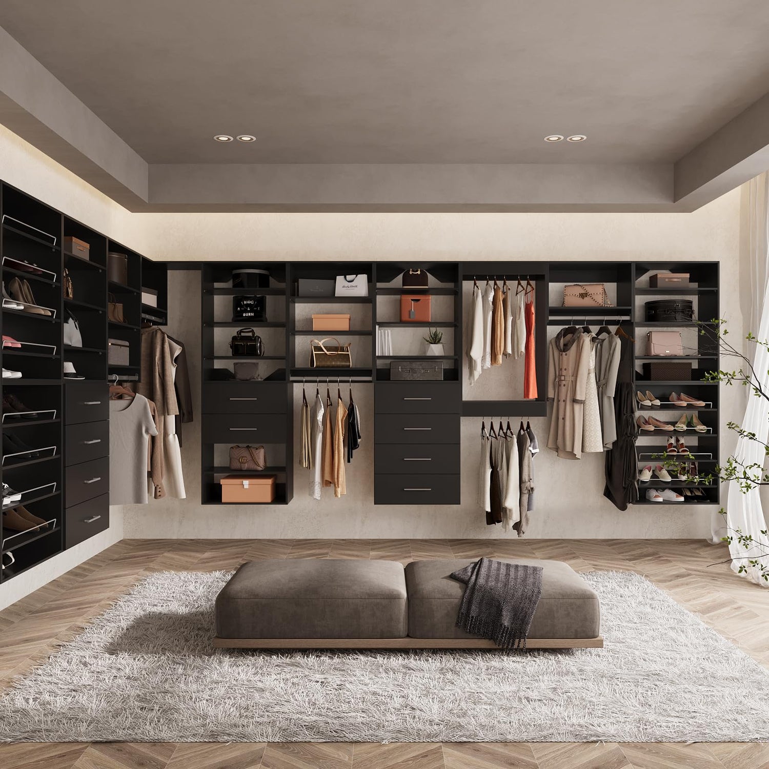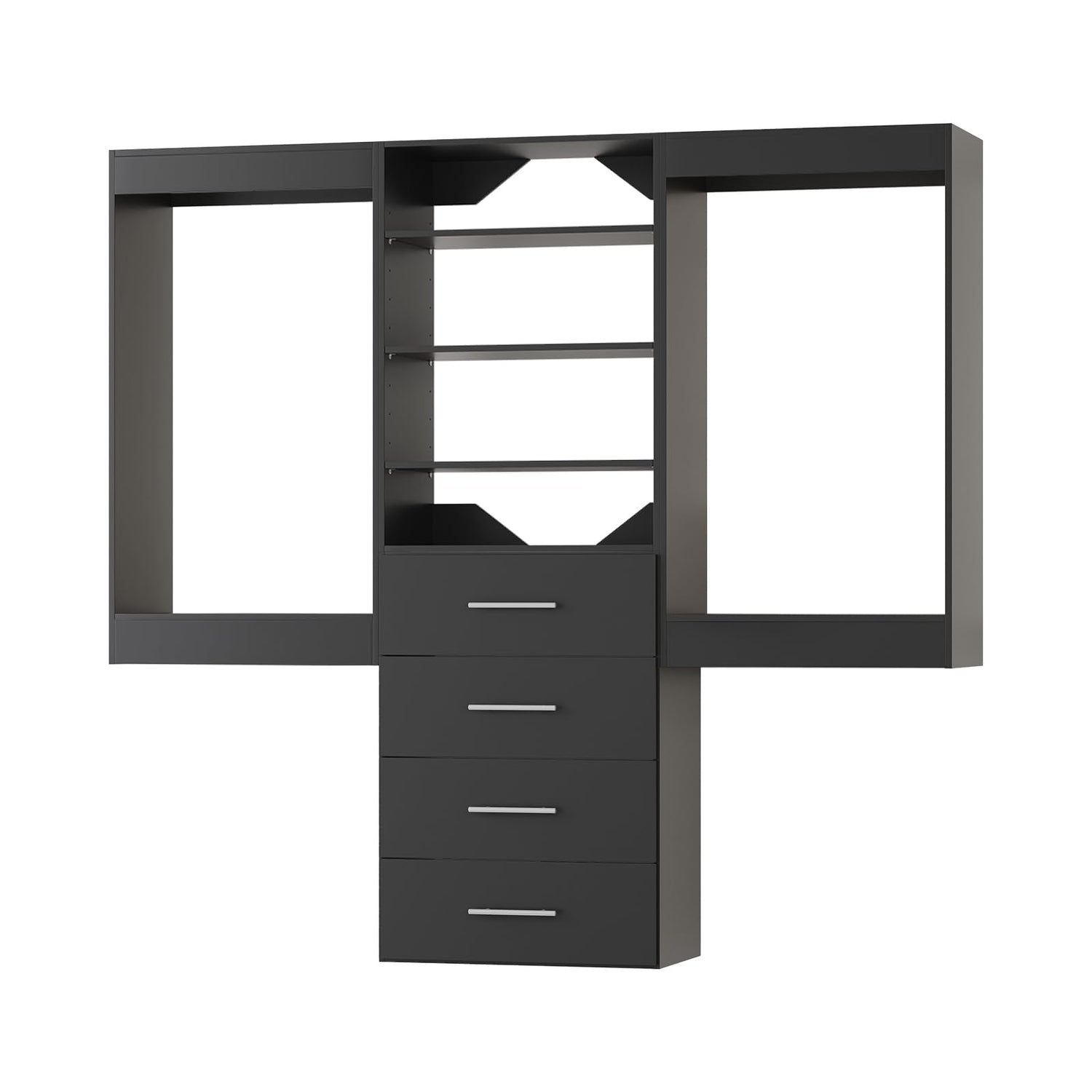 - Customizable Modular Closet System: Design your perfect wardrobe space with our fully modular closet system. Whether you're organizing a walk-in closet, entryway, or bedroom, each unit can be configured to fit your layout. Mix and match hanging sections, drawers, and shelving towers to meet your unique storage needs.