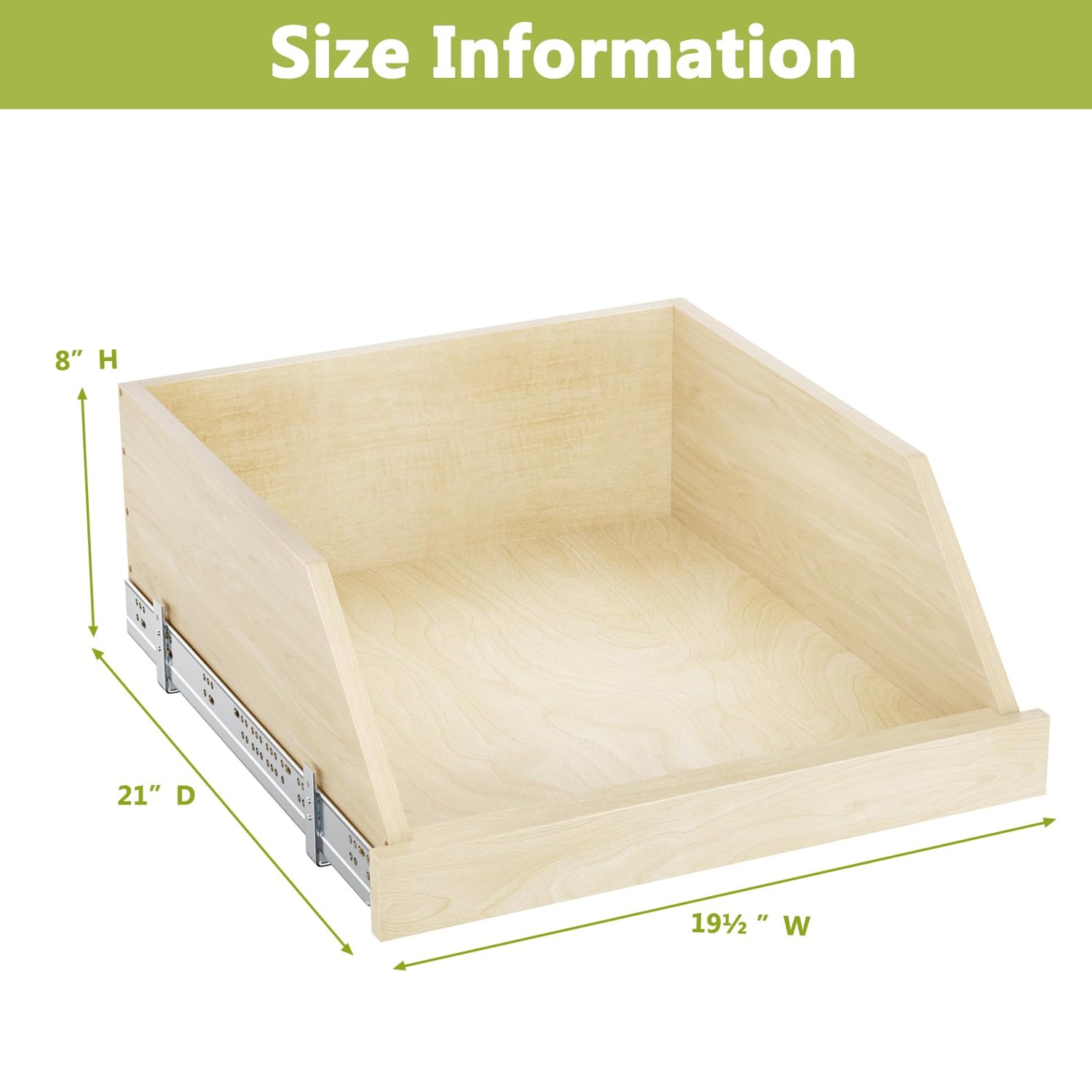 ROOMTEC Pull Out Cabinet Organizer with Full Extension Rail Slides, Wooden Pull Out Shelf for Kitchen Cabinet, Beveled 8" High Pull Out Drawer Storage Organizer with U Bracket, 19½"W×21"D, Soft Close