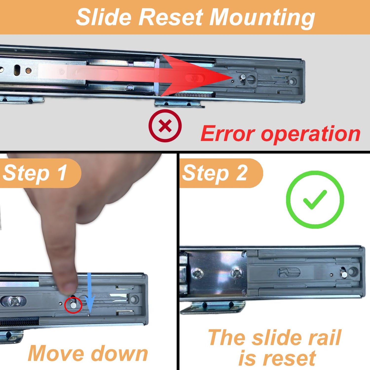 - 【Easy to Install】Installing our pull-out shelves is quick and easy with our clear instructions and included hardware. With just a few screws and a bit of patience, you can have your new shelves installed in no time. Note: Slide rail installation requires a reset operation. Please reset before installing the product to achieve the soft closing function!