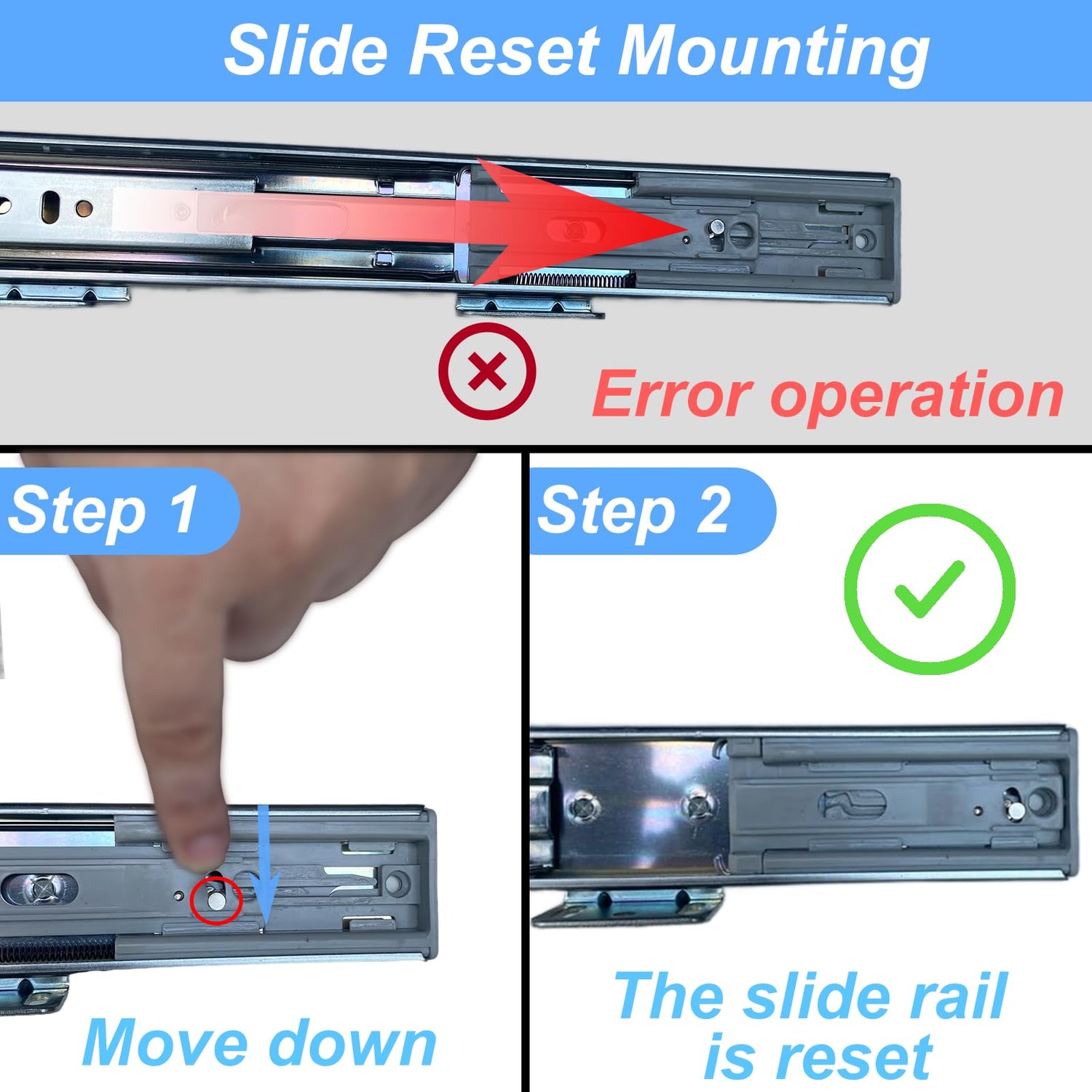 - 【Easy to Install】Installing our pull-out shelves is quick and easy with our clear instructions and included hardware. With just a few screws and a bit of patience, you can have your new shelves installed in no time. Note: Slide rail installation requires a reset operation. Please reset before installing the product to achieve the soft closing function!